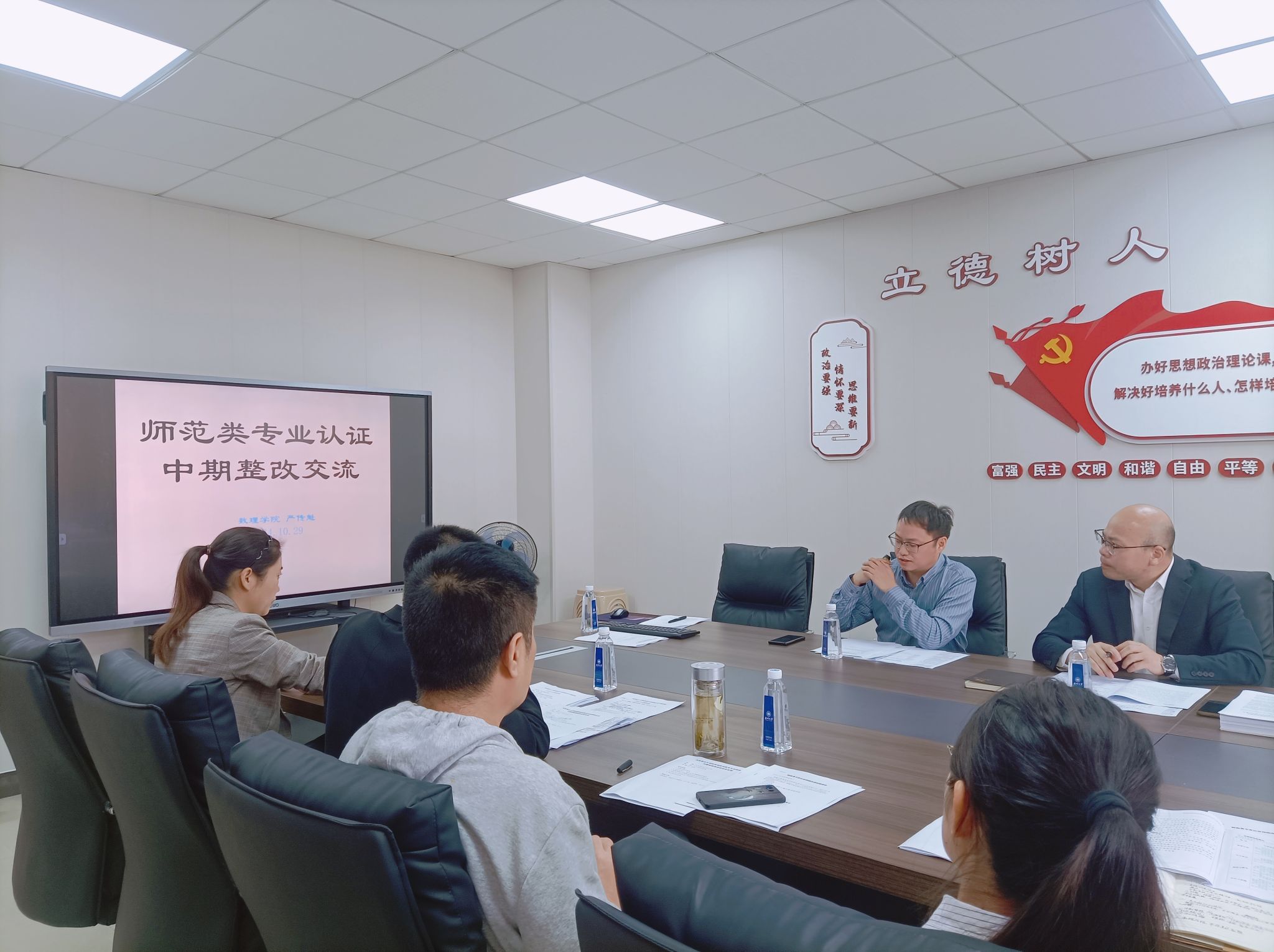 为加快推进师范专业认证中期审核工作,全面提升久久热 师范教育质量,10月29日上午,久久热 在北4-304举办了思想政治教育专业师范认证中期审核推进会。学院领导班子以及思政系全体教师出席会议,会议由副院长何玲主持。会上邀请了专业负责人、教务处吴志敏副处长以及数理学院严传魁教授做指导和交流发言。