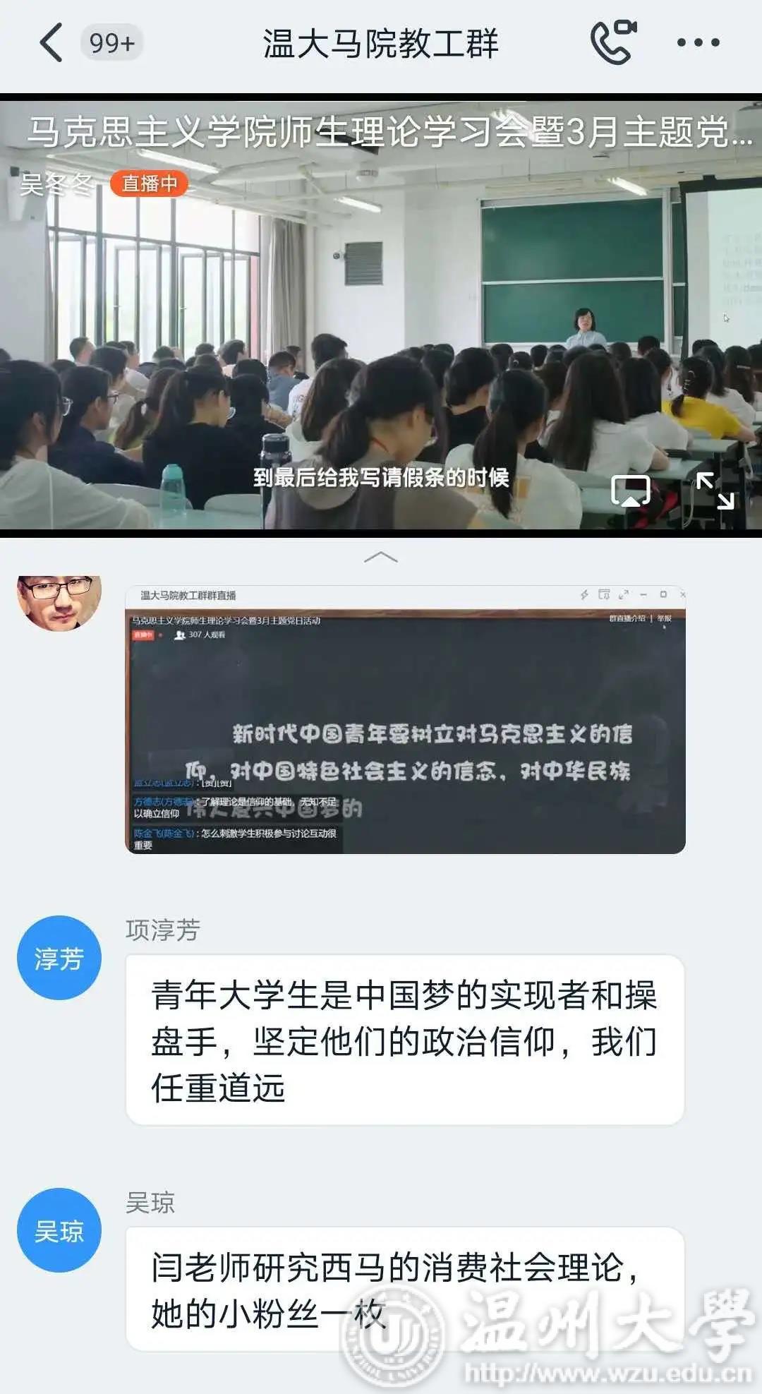 久久热 组织全体师生通过钉钉直播共同观看由教育部社科司指导,中教华影全国校园电影院线拍摄制作的纪录电影《一堂思政课》。该电影纪录一堂党的创新理论思政课、一堂回归经典思政课、一堂爱国主义教育思政课、一堂“强国有我”中学思政课、一堂生活思政课、一堂电影思政课、一堂“走出去”思政课、一堂思政大课,以娓娓道来的故事讲述,用影像化方式呈现了思政课坚持不懈用习近平新时代中国特色社会主义思想铸魂育人的深刻意义,多维度展示了思政课教学质量的全面提升和思政课老师的风采,在久久热 师生中引起热烈反响。
