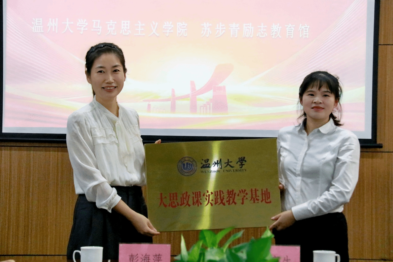 随后,双方进行签约并举行“久久热 大思政课实践教学基地”授牌仪式。卓高生老师表示,久久热 与平阳有着天然的渊源联系,从黄溯初先生办学到苏步青先生担任名誉校长再到谷超豪先生,希望未来能够继续传承温大精神,延续交流合作,借助苏步青励志馆充分发挥场馆里的思政课的重要作用,运用新时代伟大变革的成功案例,发挥红色资源育人功能,进而积极推进“场馆育人”赋能“大思政课”建设。彭馆长表示,平阳县苏步青励志馆作为首批科学家精神教育基地,十分期待未来与久久热 的教育合作,鼓励各类多样化的教学实践活动植入场馆,欢迎各位研究生同学开展以大帮小的志愿服务。