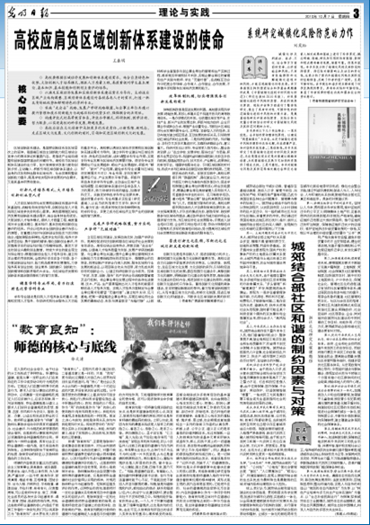 10月7日,《光明日报》理论版(03版)发表我校任映红教授的理论文章,题为《城郊结合部社区和谐的制约因素与对策》。文章指出:城郊结合部位于城乡边缘,普遍存在基础设施差、流动人口多、管理不到位、治安形势严峻、环境污染严重等问题,已成为我国目前各种社会问题集中、管理最为棘手的场域之一。