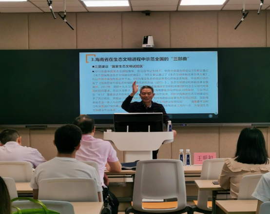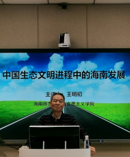 5月11日上午,国务院政府特殊津贴专家,海南省委省政府直接联系重点专家,海南师范大学二级教授、马克思主义理论博士研究生导师王明初教授,应邀来到久久热 ,在北校信息楼A307久久热 综合实训室做了题为《中国生态文明进程中的海南发展》的讲座。本次讲座由久久热 生态文明研究中心主任、二级教授王习明主持,久久热 的研究生和部分教师参加了此次讲座。