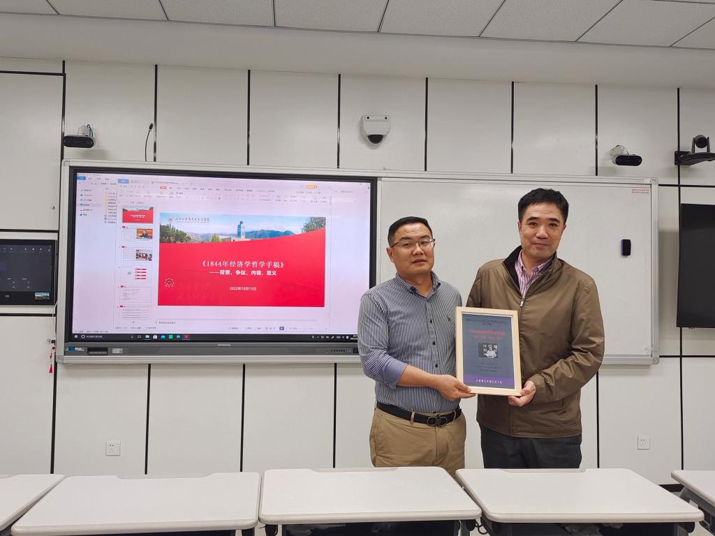 互动环节,赵光辉博士与现场师生就所有制与共同富裕的关系、不同马克思主义学者对于《手稿》的看法、共产主义与社会主义的区别等问题进行了交流,学术氛围浓厚。最后,路永照老师向赵光辉博士赠送读书会收藏纪念版海报,活动圆满结束。
