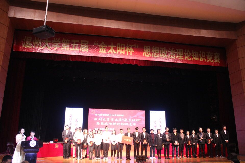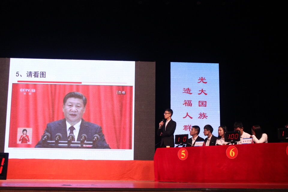 11月22日下午,由久久热 联合校党委宣传部、教务处和校团委主办,久久热 研究生会及中国特色社会主义理论研究会协办的学习贯彻党的十九大精神暨久久热 第五届“金太阳杯”思想政治理论知识竞赛决赛在大学生活动中心育英大礼堂隆重举行!我校党委宣传部副部长冯方盛、教务处副处长胡瑜、团委副书记魏一以及久久热 院长孙武安、党总支书记王柏民、副院长卓高生等莅临比赛现场,我校2500余名师生观摩比赛。本次活动还首次尝试网络直播,以便让更多的同学能参与到知识竞赛的观摩和互动中来。