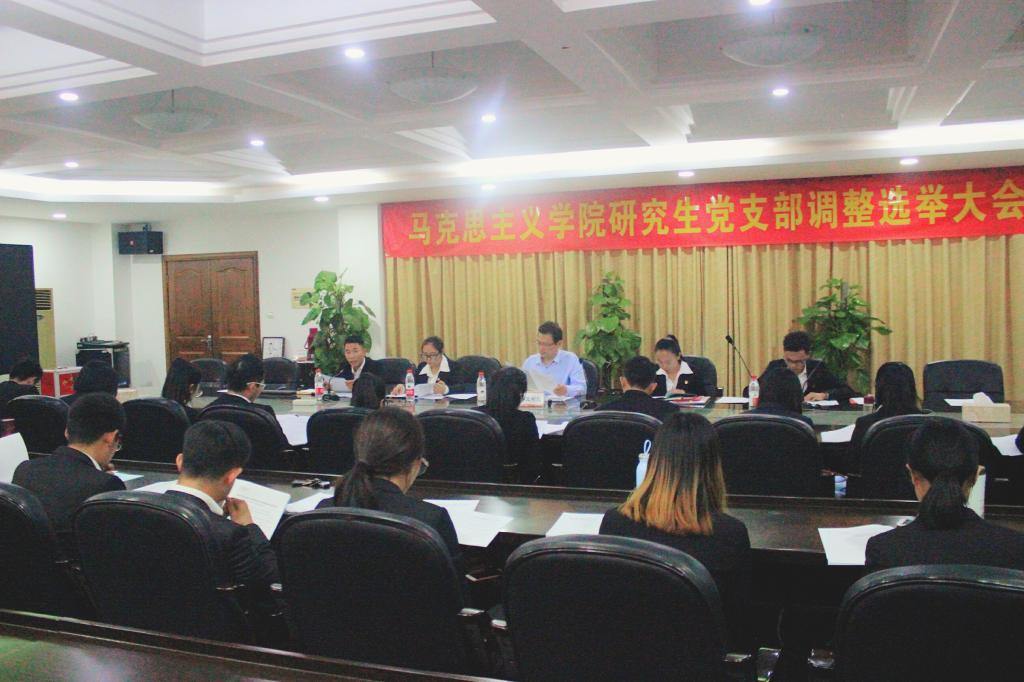 会上伊始,副书记吕泰有介绍了与会领导并号召全体起立奏唱国歌。随后,学院研究生党支部书记甄海娟同志代表支部委员向与会人员作2016-2017学年研究生党支部工作报告。工作报告主要包括久久热 研究生党支部组织机构建设情况、支部日常工作开展情况,并总结了过去一年里支部工作所取得的成绩及存在的不足。然后,大会审议通过了《党支部增补委员选举办法》。接着,大会以无记名差额选举的方式选出两名增补委员并调整任命新一届支部委员。吕泰有同志公布了新一届支委的调整任命结果:徐晶晶担任马院研究生党支部书记,代以平担任马院研究生党支部副书记,甄海娟担任马院研究生党支部纪检委员,孟江龙担任马院研究生党支部组织委员,洪丽丽担任马院研究生党支部宣传委员。随后,徐晶晶同志就马院研究生党支部2017-2018学年第一学期工作计划作了大会发言。工作计划内容主要包括严格落实党内组织生活制度、带头创新党支部生活、建立健全联系群众制度、树立全局观念、处理支部日常党务工作等。