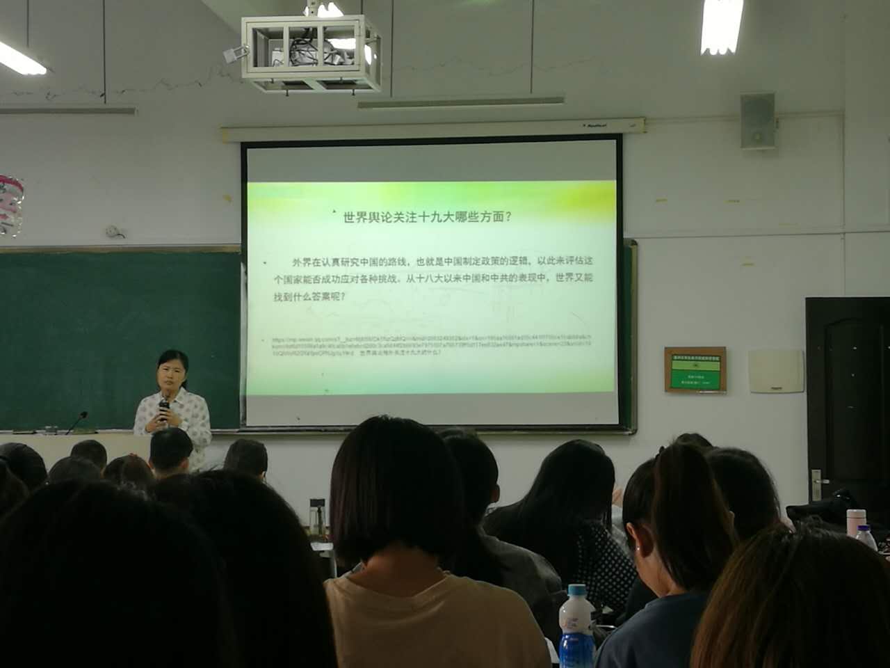 党的十九大召开后,学院还将通过党政联席会议、教学委员会会议、各教研室集体备课活动和专家报告等,认真学习报告,深刻领会报告、准确讲授报告,特别要紧密结合思想政治理论课各门课程的体系和内容,及时把党的十九大精神“进教材、进课堂、进学生头脑”。