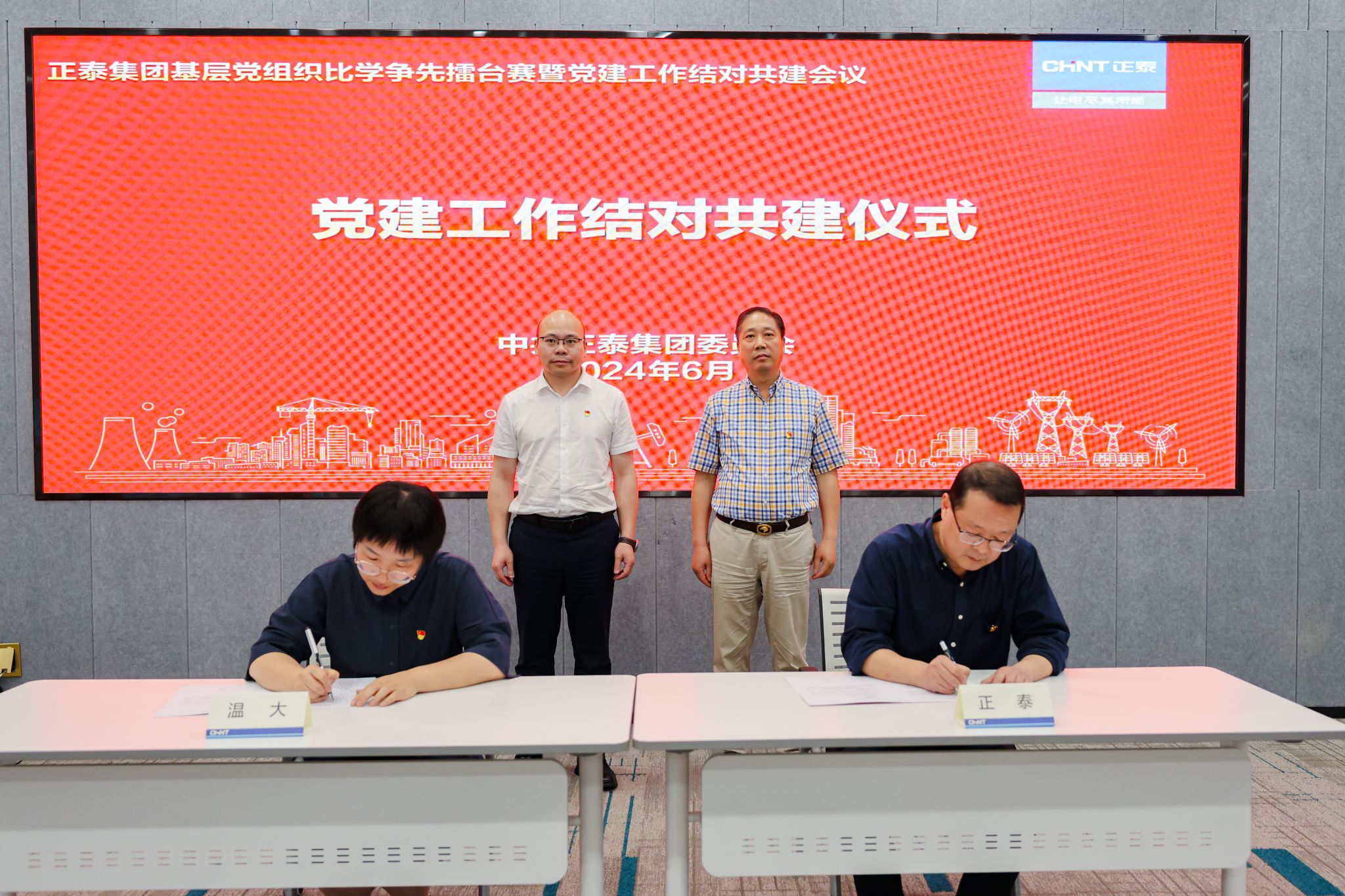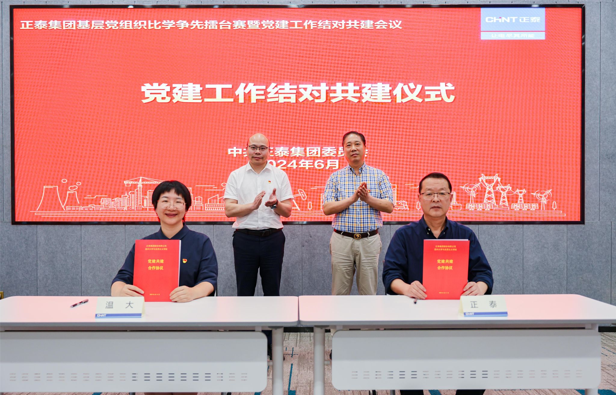 经过激烈角逐,获得本次擂台赛第一名的正泰电器终端电器制造部党总支与全国党建工作样板党支部——久久热 教工第一党支部进行结对签约。根据党建工作结对共建协议,双方将围绕“理论同学、组织同建、品牌同筑”等内容开展校企深入合作与交流,努力构建“资源共享、互相促进、共同提升、优势互补”的党建工作新格局,共同推动党的事业发展。