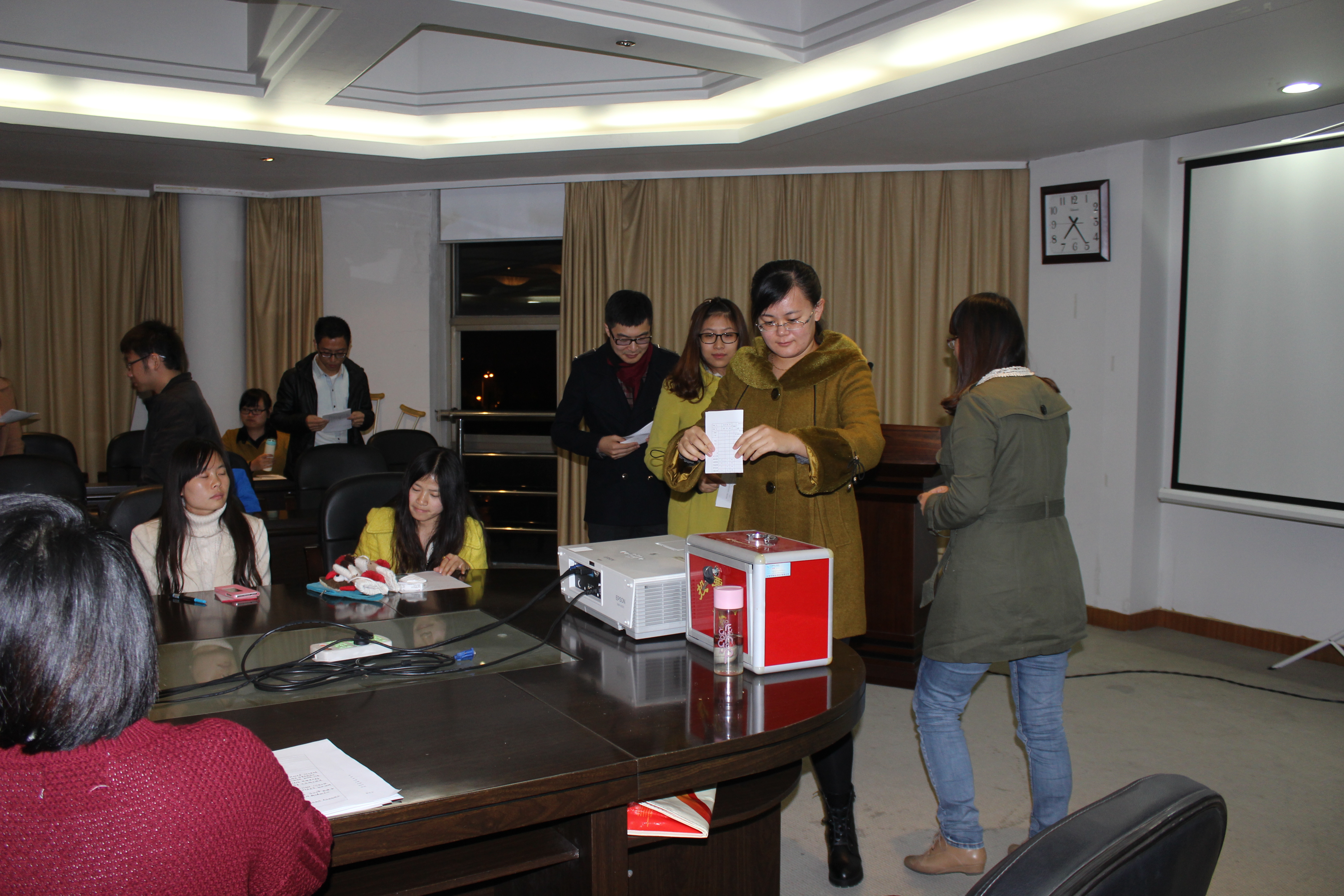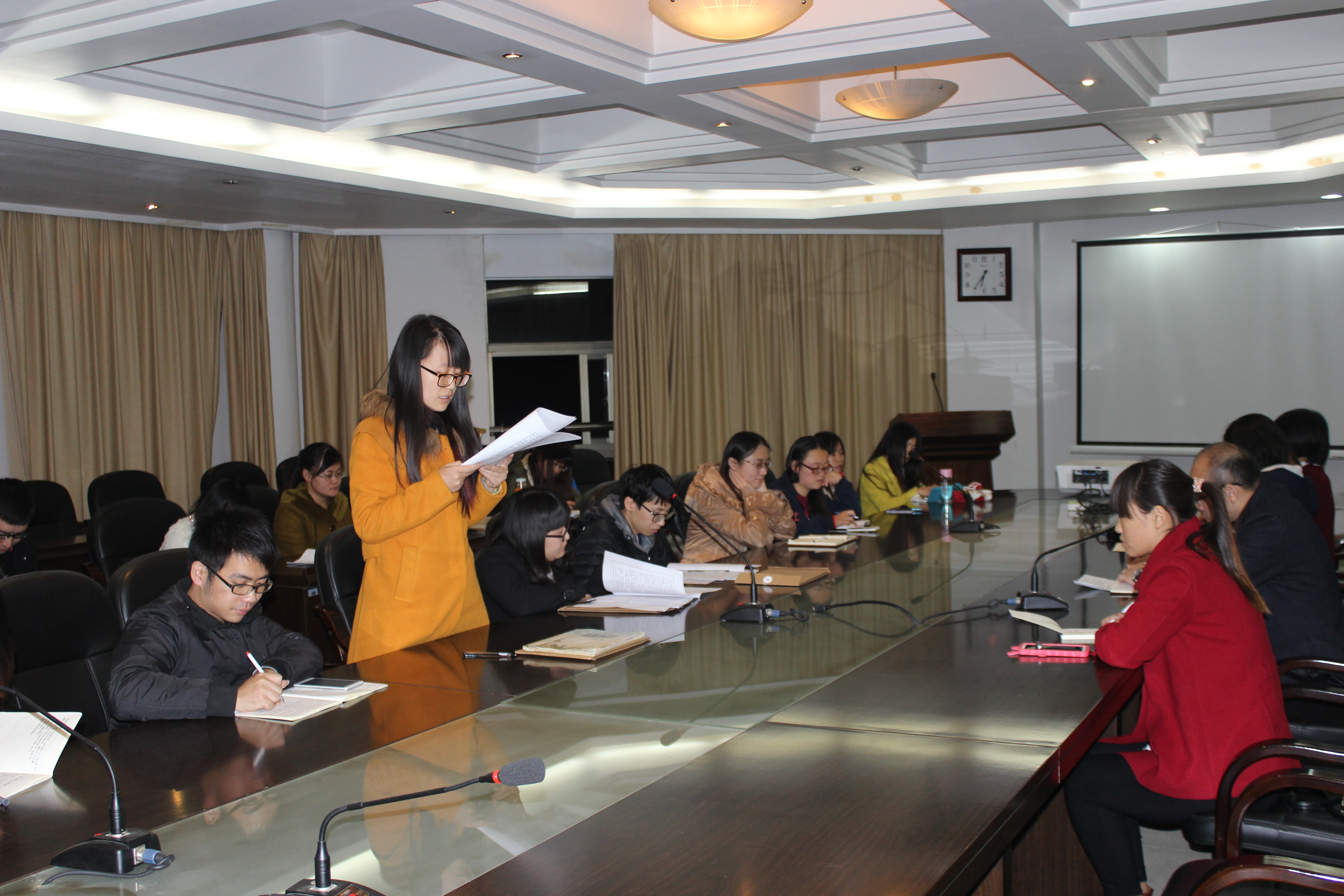 本次会议共有两项议程:大会议程第一项,由卓高生老师宣读新一届党支部委员会名单:党支部书记、组织委员、宣传委员分别由卫启星同志、喻婷婷同志、张静静同志担任。卓老师对2013届党支部过去一年的工作给予了高度的赞扬和肯定,并对新一届支部的工作提出了新的希望和要求;大会议程第二项,由发展对象曲小远同学、董舟颖同学、林耀同学分别宣读入党志愿书,介绍个人对党的认识以及在学习、思想上的发展情况。然后由入党介绍人分别就三位发展对象在考察期间的表现情况向大会作了相关陈述。最后,大会以无记名投票的方式进行了表决,全体与会党员一致同意党支部吸收曲小远同学、董舟颖同学、林耀同学为中共预备党员。