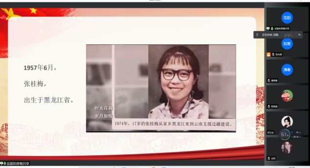 视频学习结束后,支部进行了传统特色主题活动——支部党员讲党课。首先由花甜同志带来微党课《向时代楷模张桂梅学习》。其内容讲述了“七一勋章”获得者张桂梅同志的生平与感人事迹,张桂梅同志把别人眼中的不可能变为现实,自2008年建成全国第一所公办免费女子高中以来,这12年间,她让1804名女孩考入大学,走出高山,实现了“让大山女孩有书读”的梦想。作为青年党员,我们要像榜样致敬、向榜样学习!