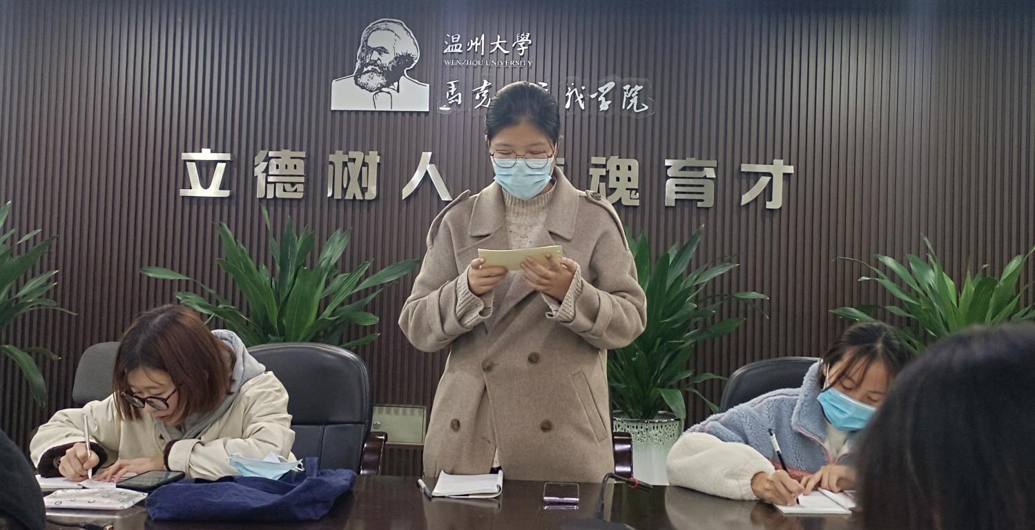 在本次政治理论学习上,孙张帆同志带领支部学生党员认真学习会议精神,围绕十九届六中全会精神特别是在总结党的百年历史和重大成就方面让两位同志分享了自己的学习心得。