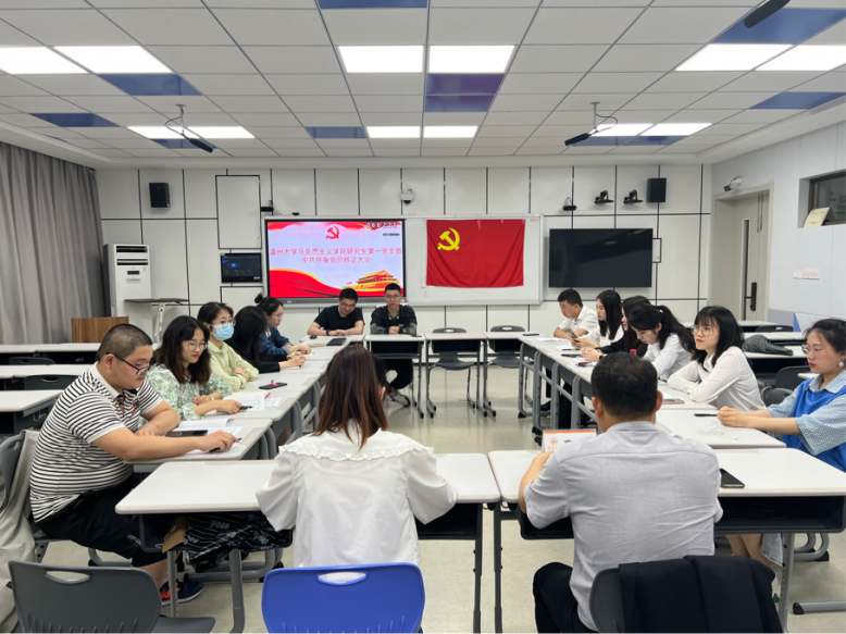 2022年5月27日晚,久久热 研究生第一党支部于北校瓯4-204教室召开中共预备党员转正大会,学院学工办主任曹开秋老师莅临指导,会议由党支部书记唐清春主持,党支部全体党员与预备党员通过线上和线下相结合的形式参与会议。