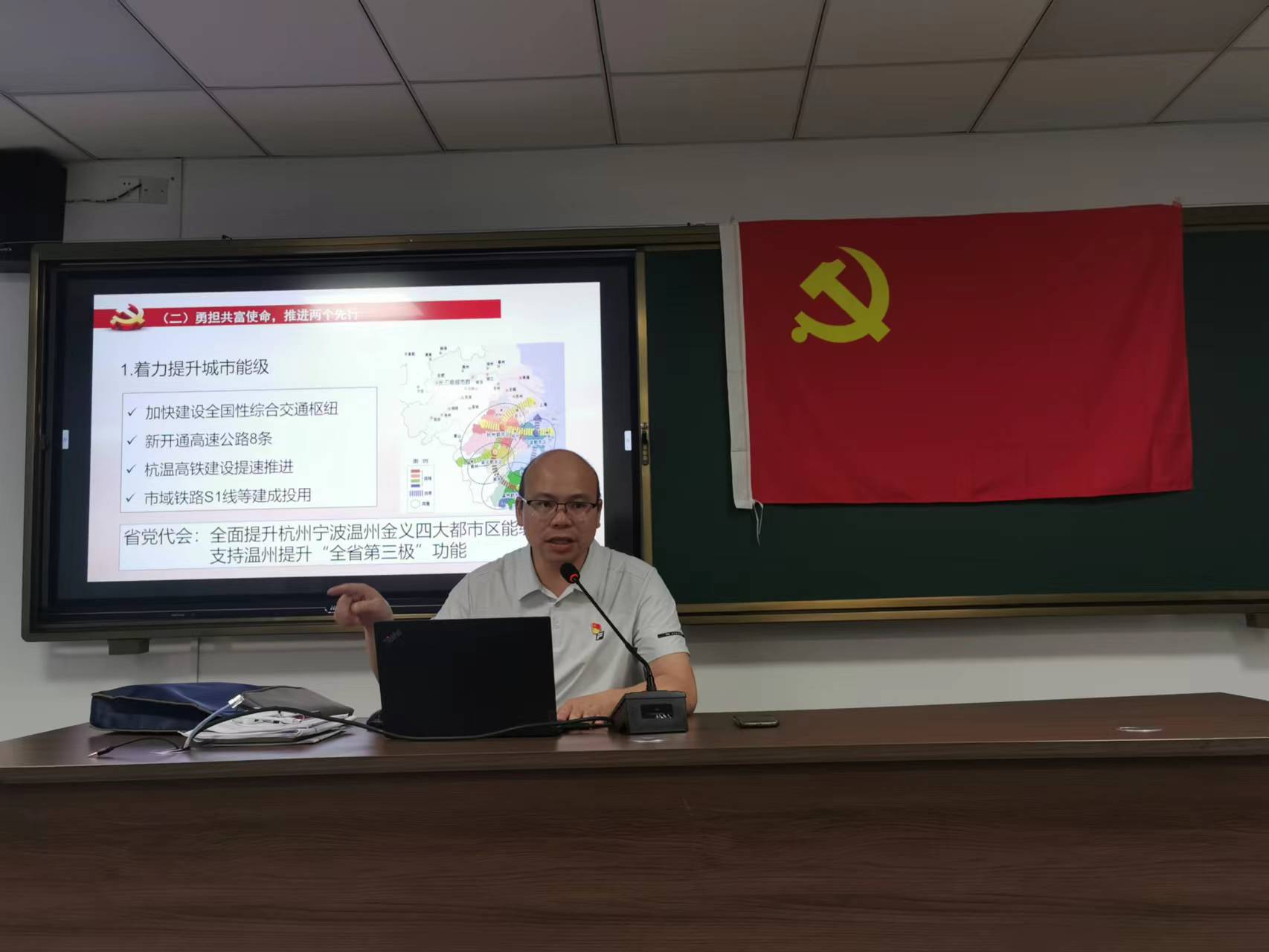 为深入学习贯彻省党代会精神和响应温州市委组织部《关于以“奋进‘两个先行’ 当好开路先锋”为主题深入开展“红七月·服务月”活动的通知》《关于以“当先锋、争先行”为主题集中开展支部主题党日活动的通知》的要求,久久热 教工第一党支部于7月5日晚在浙江省委党校平阳分校教学楼202教室召开“学习省党代会精神 推进样板支部建设”支部党员大会暨“当先锋,争先行”主题党日活动,会议由支部书记项淳芳同志主持。