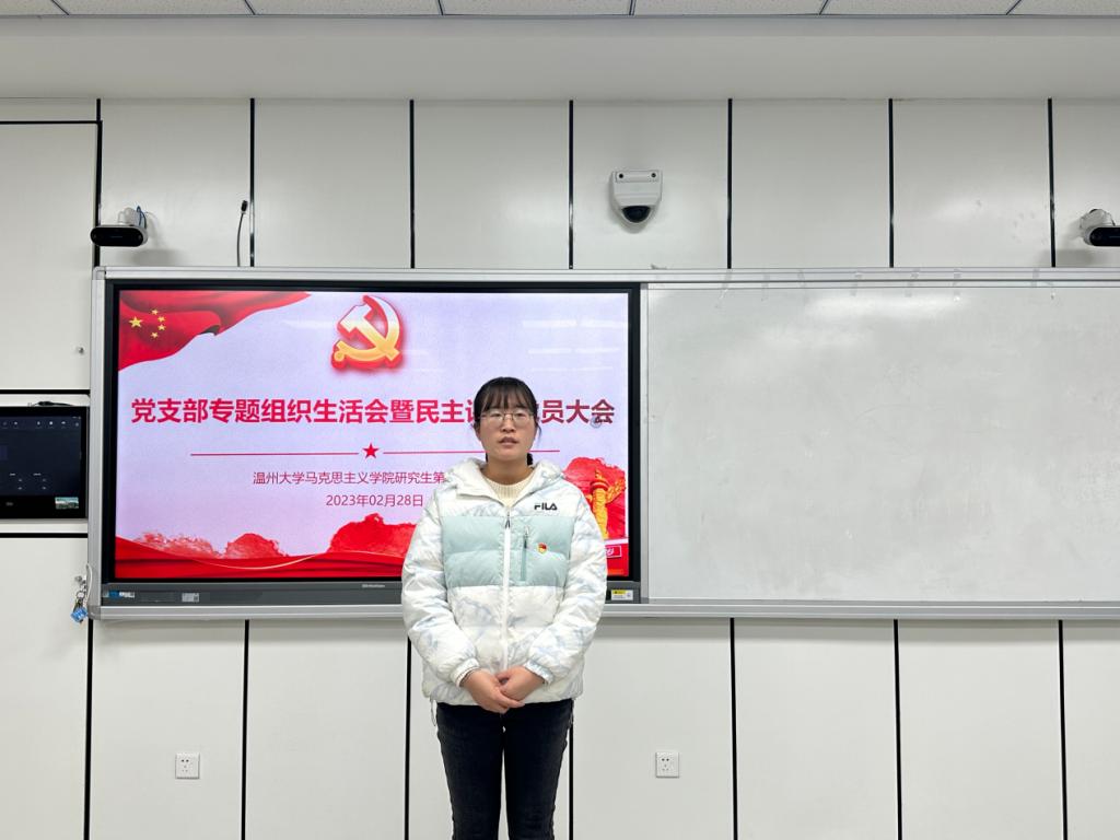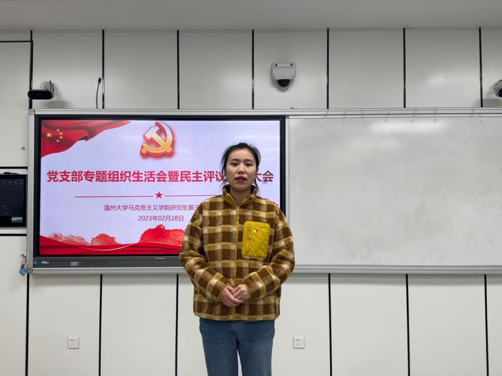 2023年2月28日晚,久久热 研究生第三党支部在北校区瓯四-206召开党支部专题组织生活会暨民主评议党员大会。本次会议由支部书记项程飞主持,支部全体党员参与。