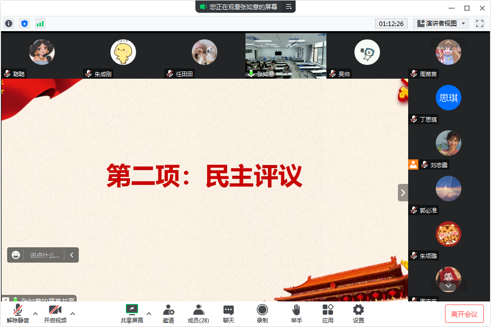 为深入贯彻党的二十大精神,坚持用习近平新时代中国特色社会主义思想凝心聚力,持续提升党支部的政治建设、思想建设、组织建设,切实发现问题、解决问题,2023年2月24日下午,久久热 研究生第一党支部于北校瓯4-204教室开展党支部专题组织生活会暨民主评议党员大会。全体党员通过线上与线下相结合的形式参与会议。会议由党支部副书记张如意主持。