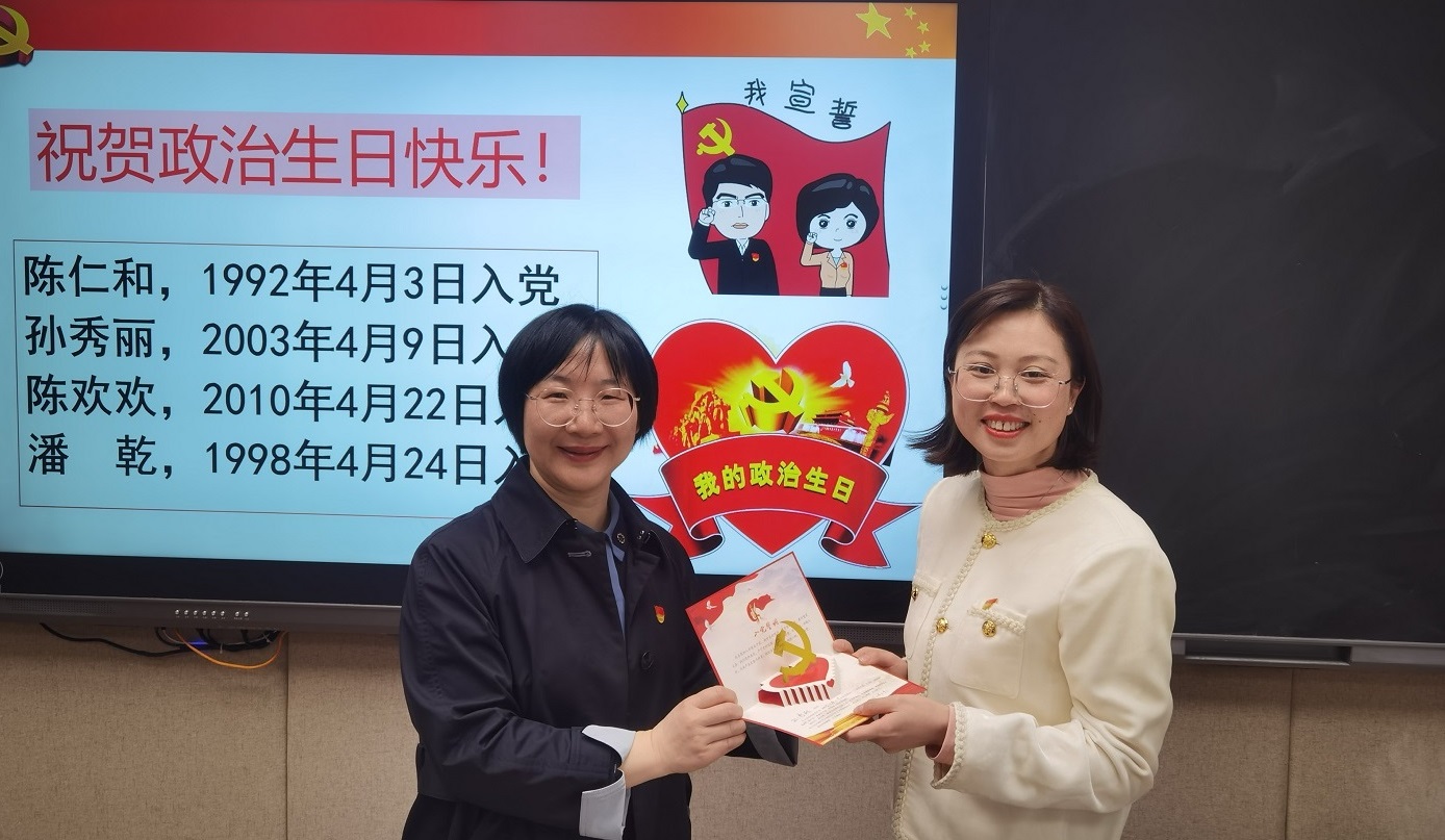 此外,支部党员一起学习了2023年度全省教育系统全面从严治党暨清廉学校建设推进会精神,强调必须按照省教育厅工作部署,提高政治站位,立足“两个永远在路上”,加强党性修养,夯实师德师风,以实际行动推动全面从严治党和清廉学校建设生根落地、开花结果。最后,在党支部书记项淳芳的带领下,重温入党誓词,共庆4月份集体“政治生日”,缴纳4月份党费。零点送达的电子生日贺卡,一声诚挚的祝福,一件有纪念意义的礼物,充满仪式感的“政治生日”,使党员感受到党组织的关怀和温暖,有助于强化身份意识和宗旨意识,为支部双创工作释放凝聚力和战斗力。