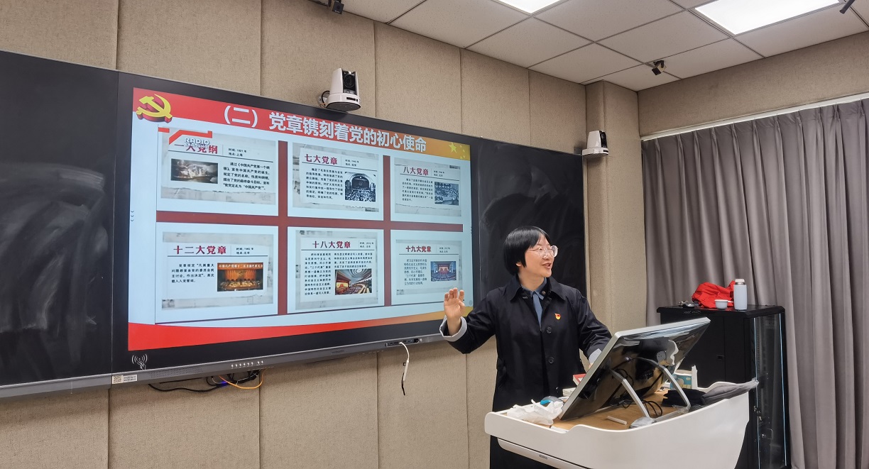 党支部书记项淳芳以《真学深信笃行,做尊崇党章的合格党员》为题讲党课,通过回顾党章的百年发展史,从党章是什么、为什么要学习尊崇党章、怎样学习尊崇党章三个方面,深入讲解了党章的内容、性质、地位和作用,为全体党员深刻领悟“两个确立”的决定性意义,增强“四个意识”、坚定“四个自信”、做到“两个维护”,把党章各项规定要求落实到工作中提供了行动指南。随后,支部党员通过课堂派平台以党章知识测验的形式,检验了各自学习的成效,并以党小组为单位交流学习心得,对照党章找差距,讨论如何在日常工作和生活中充分发挥党员先锋模范作用。