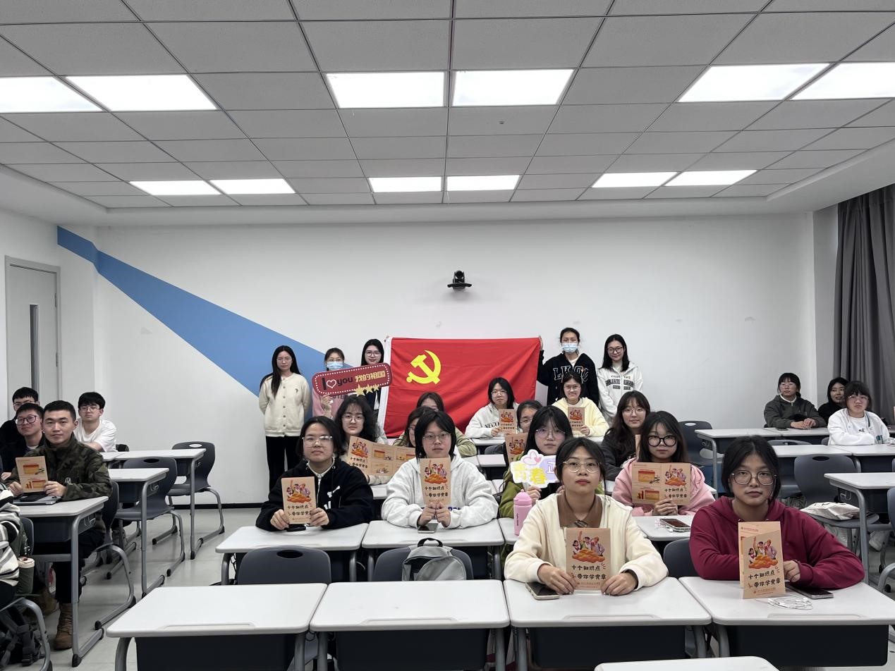 另一支学生党员同志小分队走进学院教师办公室和22级本科生教室,分发“十个知识点 带你学党章”学习手册并就党章知识进行了宣讲,与马院师生共同开展积极热烈的讨论与学习,进一步提高了学生党员的自身党性修养和实践宣讲能力,也帮助马院师生更加深入了解党的二十大精神和党章相关知识。每位党员应以党章修改为契机,在原原本本,融会贯通上下功夫学,把党章学习作为经常性工作来开展。
