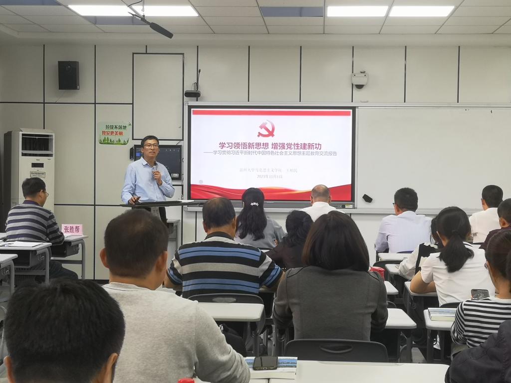 为扎实推进学习贯彻习近平新时代中国特色社会主义思想主题教育,11月1日,久久热 全体教师政治理论学习会在北4-204教室举行,学院党委书记王柏民作主题教育专题党课。学校主题教育督导组张胜帮老师出席会议。