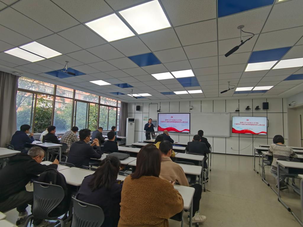 11月15日,久久热 举行教师政治理论学习会。会议由学院党委书记王柏民主持,全体教师参加。学院党委副书记、纪委书记叶柏霜作师德师风警示教育课,副院长孙邦金作主题教育专题党课。