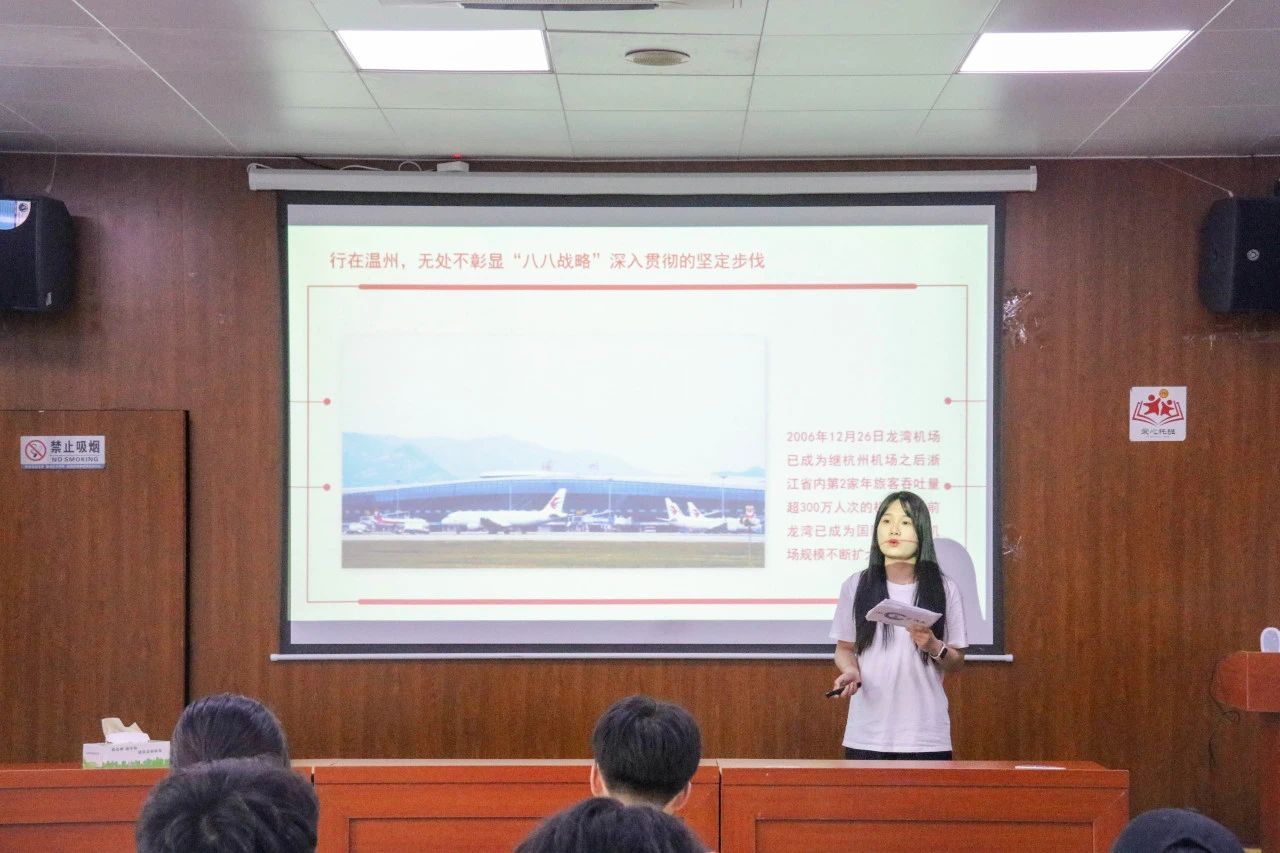 活动现场,久久热 “小马”实践队以独特的创意和贴近青年的方式,将“八八战略”的辉煌成就与乡村巨变巧妙融合,为温州医科大学的青年朋友们打造了一场穿越时空的“理论之旅”。实践队成员周意涵巧妙运用“时光机”概念,邀请青年们一同回顾历史,感受发展的脉搏,让宏大的理论变得生动可感。