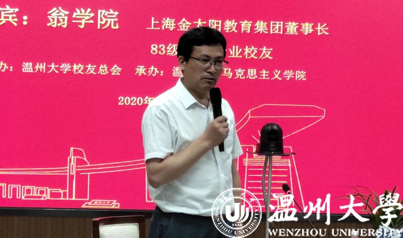 2020年是金太阳教育集团创办的第23周年。翁学院校友回顾过去,感慨万千。或许是命里注定与教育事业结缘,他的名字里就有“学院”两个字。1983年,他考上了温州师范学院并摘取了温州市文成县的高考文科状元,进入温州师范学院政治专业学习。大学毕业后,他走上三尺讲台,成为一名教师,从此就再也没有离开过教育事业。