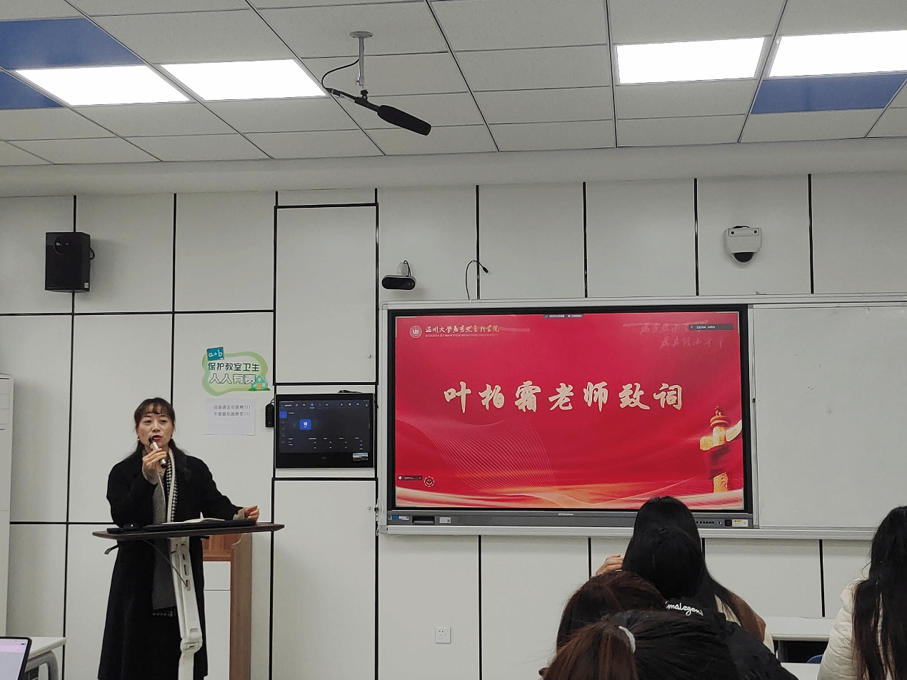 副书记叶柏霜总结讲话。叶老师希望同学们能够以拥抱的姿态、坚韧的状态、严谨的心态迎接即将到来的实习生活,严格遵守工作纪律和规章制度,做到两点一线、饮食规律,保持健康的身体状态。在考研层面,叶老师表示,考研是同学们实现人生理想的重要途径,也是检验学习成果的重要标准。她鼓励同学们要坚定信心,制定合理的复习计划,注重方法和策略,实现人生飞跃。