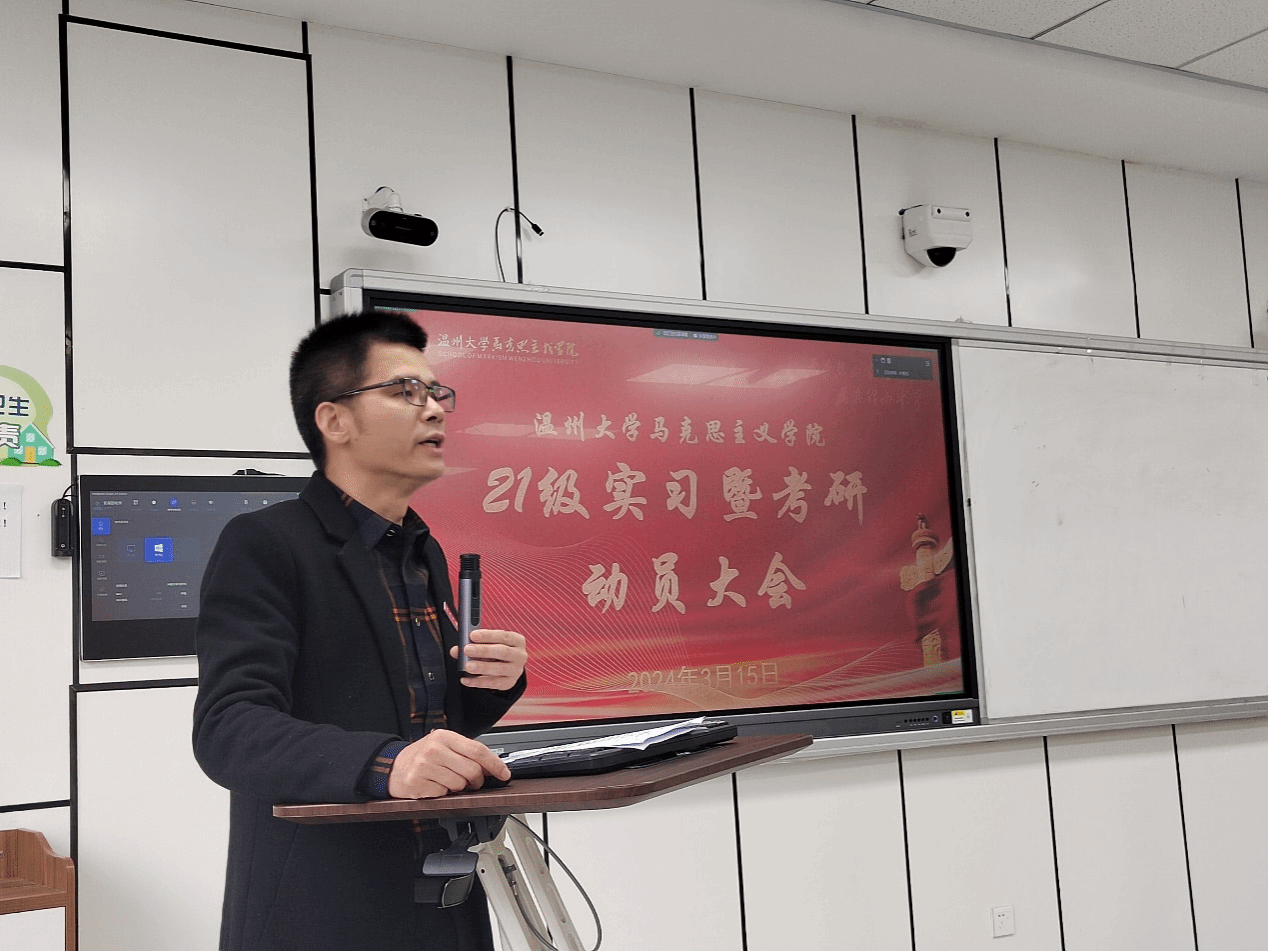 为了更好地开展实习和考研任务,激发同学们的实习热情,明确考研目标,迈向人生新的征程,2024年3月15日,久久热 了21级实习暨考研动员大会在北4-206隆重举行。学院副院长吴志敏老师、党委副书记叶柏霜老师、思政系主任孙金波老师、指导老师代表以及2021级政教全体学生出席。动员大会由21政教2班孙文婵主持。