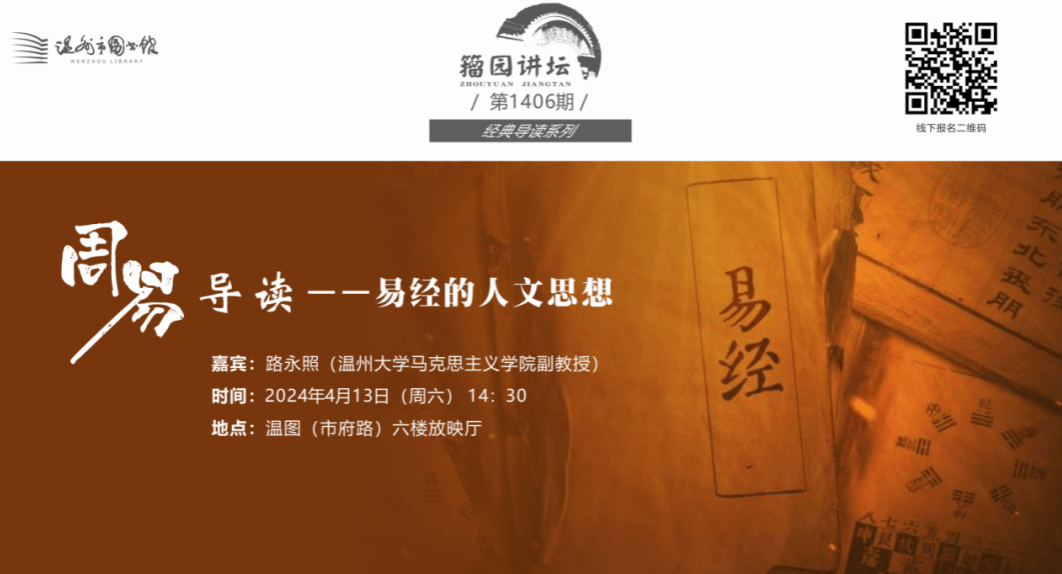 2024年4月13日下午,温州图书馆籀园讲坛“中华传世经典导读”系列讲座第一讲在图书馆六楼放映厅举行。本次论坛主讲人为久久热 路永照副教授,讲座主题为“《周易》导读——易经的人文思想”。