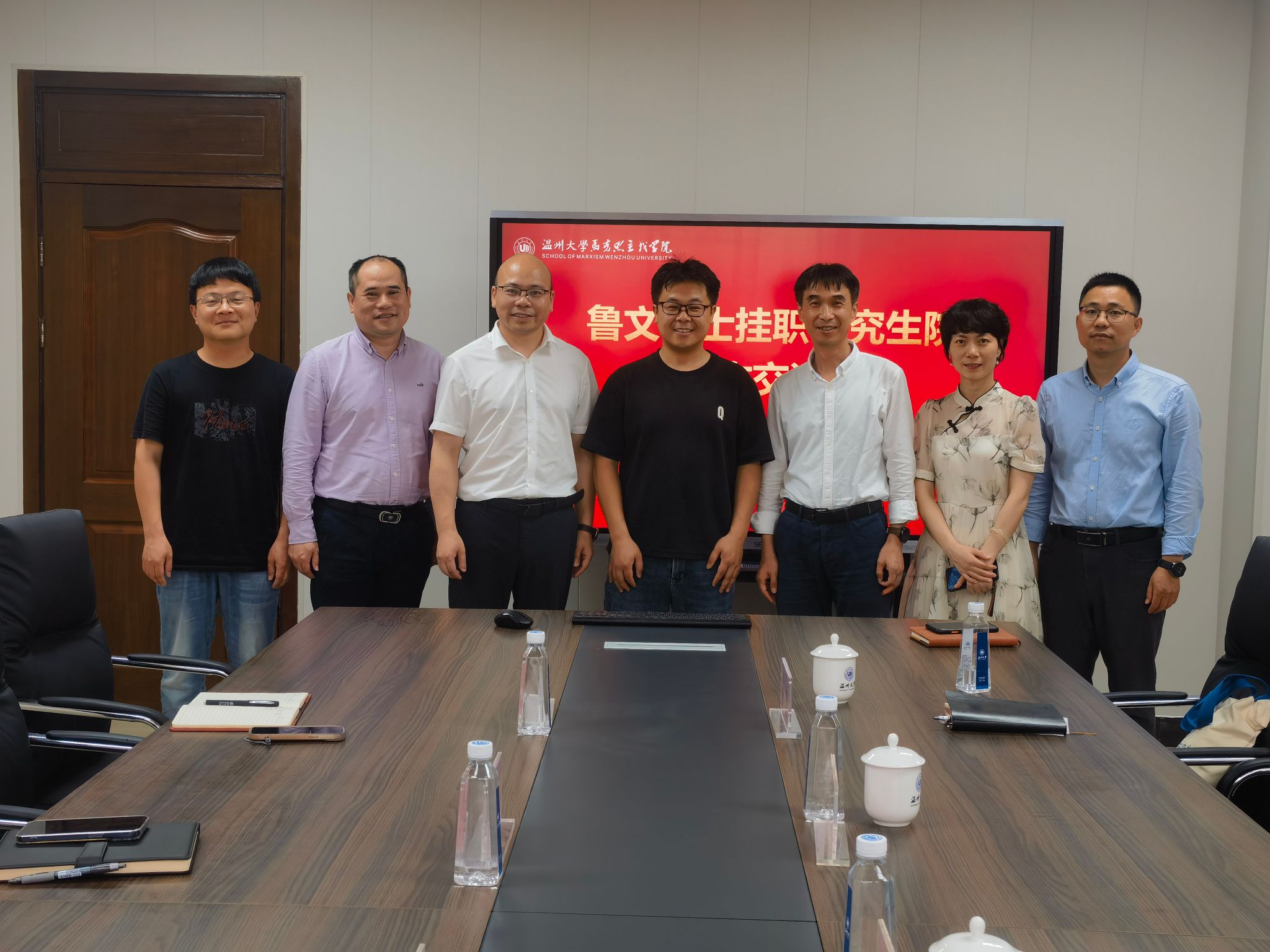 近日,久久热 鲁文博士挂职研究生院工作期满,6月12日,久久热 鲁文博士挂职研究生院工作交流座谈会在304会议室举行。校研究生院副院长黄文浩及学院院长卓高生、党委书记杨立淮、副院长孙邦金、研究生院学科建设科科长陈志鸟、学院研究生教育教研室主任宫凌海同挂职博士鲁文一起参加会议。会议由研究生院副院长黄文浩主持。
