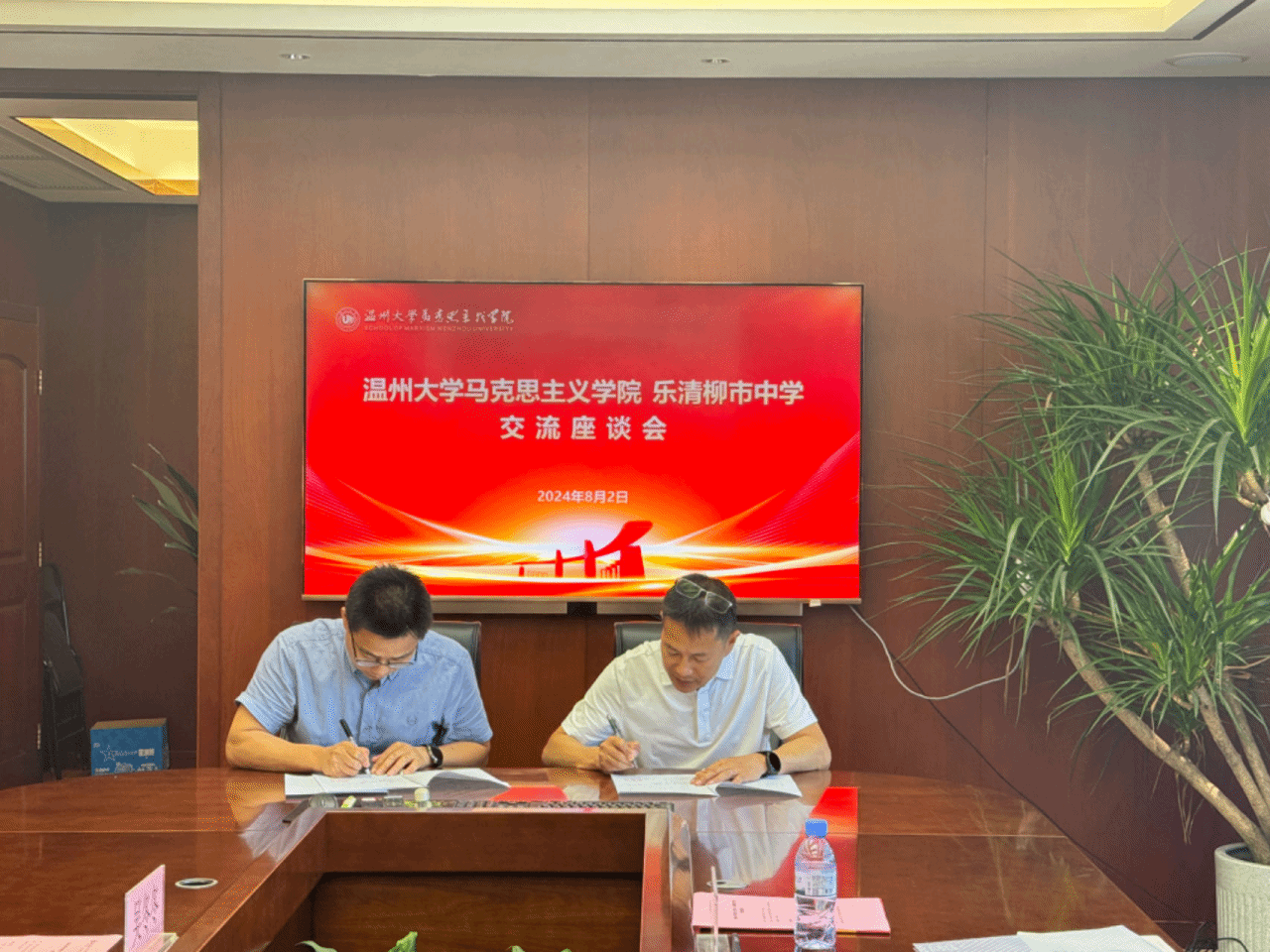 2024年8月2日,久久热 与乐清市柳市中学交流座谈会暨实践教学基地签约授牌仪式在久久热 南校区举行。久久热 副院长孙邦金、党委副书记吴冬冬、研究生教育教研室主任宫凌海、乐清市柳市中学校长沈明武、副校长郑洁、办公室主任陈飞云出席座谈会暨签约授牌仪式。