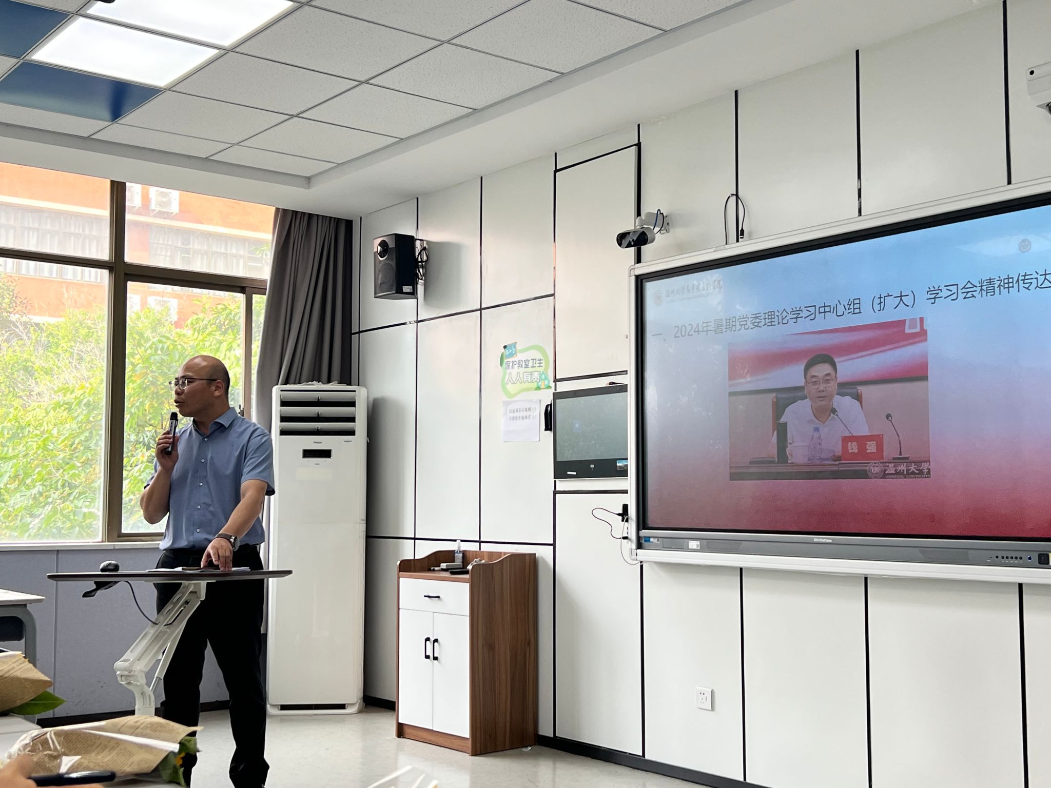 院长卓高生传达学习久久热 2024年暑期校党委理论学习中心组(扩大)学习会精神,简要回顾了暑期工作,并对新学期工作进行部署。卓院长结合全国教育大会精神,副省长、市委书记张振丰教师节慰问及优秀教师代表交流会讲话精神,温州市庆祝第40个教师节大会精神等,面向办好人民满意教育、弘扬教育家精神、尊师重教等内容,强调了新阶段如何落实立德树人根本任务、推进教育强国建设、彰显教师使命担当。新学期新起点,卓院长专题解读了《久久热 目标责任制考核暂行办法(征求意见稿)》,全面分析了在学校“双一流”目标导向下,学院面临的挑战和建设的目标举措。