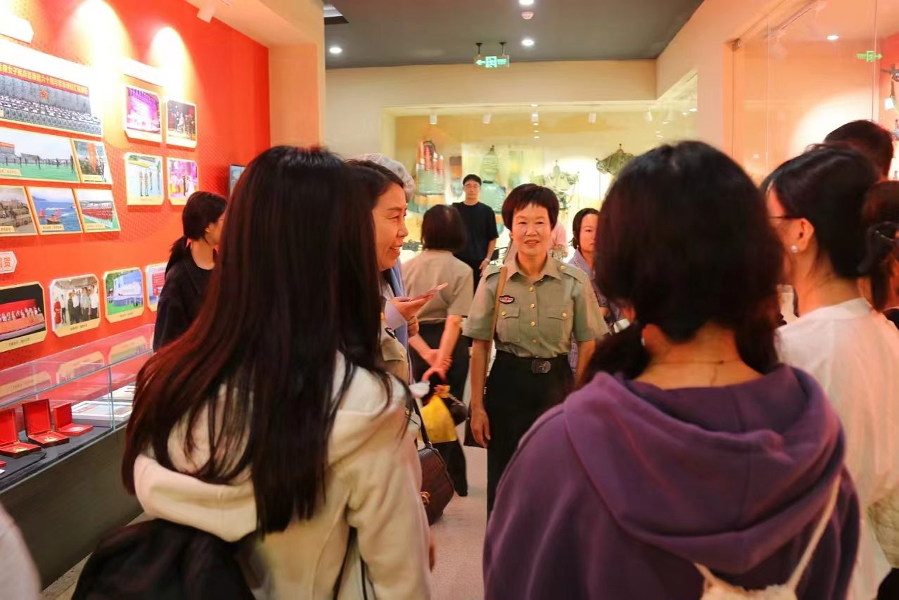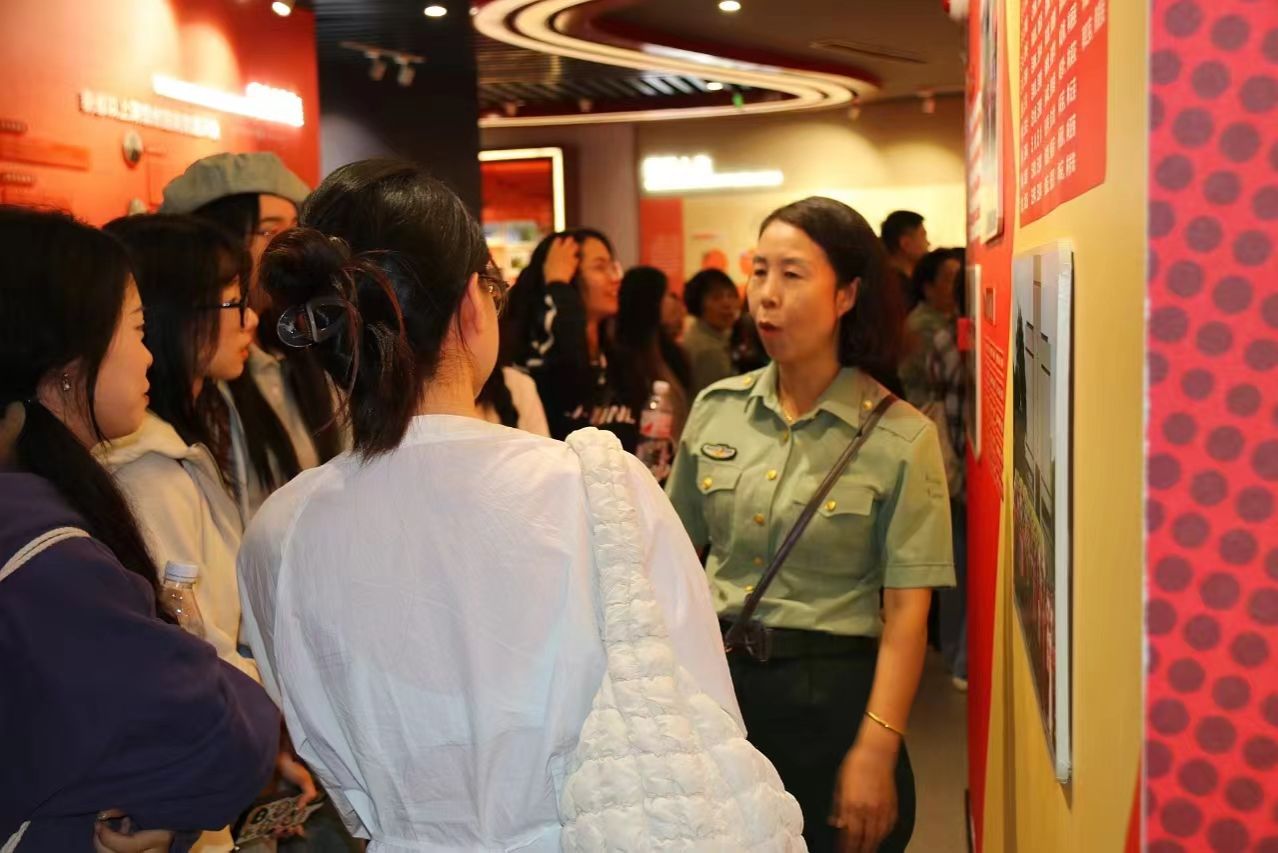 随后,师生们与女子民兵们一起参观了洞头先锋女子民兵连纪念馆。这场活动中,女子民兵们不仅作为历史的传承者,也作为现场的讲解员,为久久热 的师生们提供了一次深刻的历史教育和精神洗礼。纪念馆包括海霞之魂、海霞之路、海霞之光、海霞之星等四个展厅,在参观过程中,师生们积极提问,女子民兵们认真回答。60多年前,在这座海岛上,以汪月霞为代表的16名渔家姑娘响应“大办民兵师”和“全民皆兵”的号召,组建了全国第一支女子民兵排。先锋女子民兵连继承和发扬了人民解放军的光荣传统,在军民联防、海防战备、抢险救灾、维护社会治安等多个方面取得了显著成绩,成为全国民兵预备役部队建设中的一面旗帜。六十余年薪火相传,一路征程一路歌,一个个闪光的名字,一群群拼搏的身影,记载了女子民兵连砥砺前行的历程。海霞女民兵这种爱岛尚武、励志奉献的“海霞精神”激励着在场每一位师生,更加深入了解了民兵在中国共产党领导下的重要作用和贡献。这一环节让师生们深刻体会到了海霞精神的丰富内涵和历史价值。