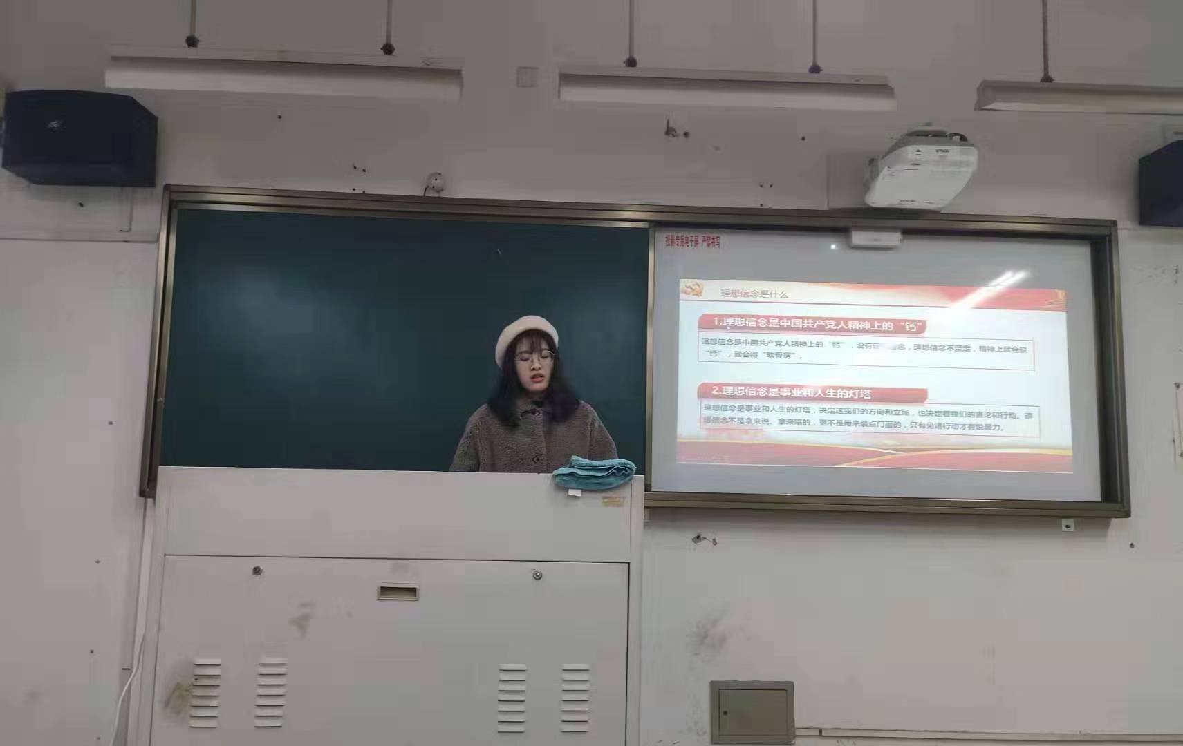 舒畅同志从“理想信念”是什么,“理想信念”的重要性,为什么坚定“理想信念”和如何坚定“理想信念”四个方面进行解释。第一部分她指明了“理想信念”的内涵是指对马克思主义科学的信仰和坚定社会主义信念;第二部分舒畅同志从中国共产党前进的根本方向、为中国共产党提供勇往无前的精神动力、是中国共产党人团结奋斗的思想灯塔、提升中国共产党人的精神境界这四个角度说明了“理想信念”的重要性;第三部分她从历史和现实出发论证了坚定“理想信念”是中国共产党通往胜利的钥匙;第四部分她向党员同志们介绍了具体如何做到坚定“理想信念”的四个方法。