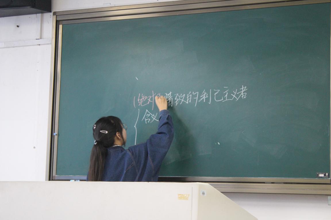 首先进行的是讲课比赛,要求十三位选手以微课堂的形式向大家分享自己的观点,这样的形式不仅贴合我们师范专业的特色,同时也给予同学们锻炼师范技能的机会。率先出征的是17级林芷彦同学,她阐述了精致的利己主义的含义及措施,其讲课姿态落落大方,课堂氛围活泼生动,解释清晰完整,为比赛开了一个好头;紧接着上场的是17级的陈玲雅同学,她从大学生的身份出发表达了自己的爱国之情,从乡村振兴切入向大家展现了政教学生应有的心系祖国发展,期盼祖国繁荣的家国情怀;19级的徐新怡同学表达了“感恩是人生的必修课”这一观点,同时与大家进行互动,引导大家回想生活中令人感动的小事并倡议大家留意自己身边发生的点点滴滴,做一个懂得感恩的人;最后17级的许媛媛同学用她极具说服力和渲染力的表达方式从另一个角度向大家展现她对精致的利己主义的理解并剖析其优劣。