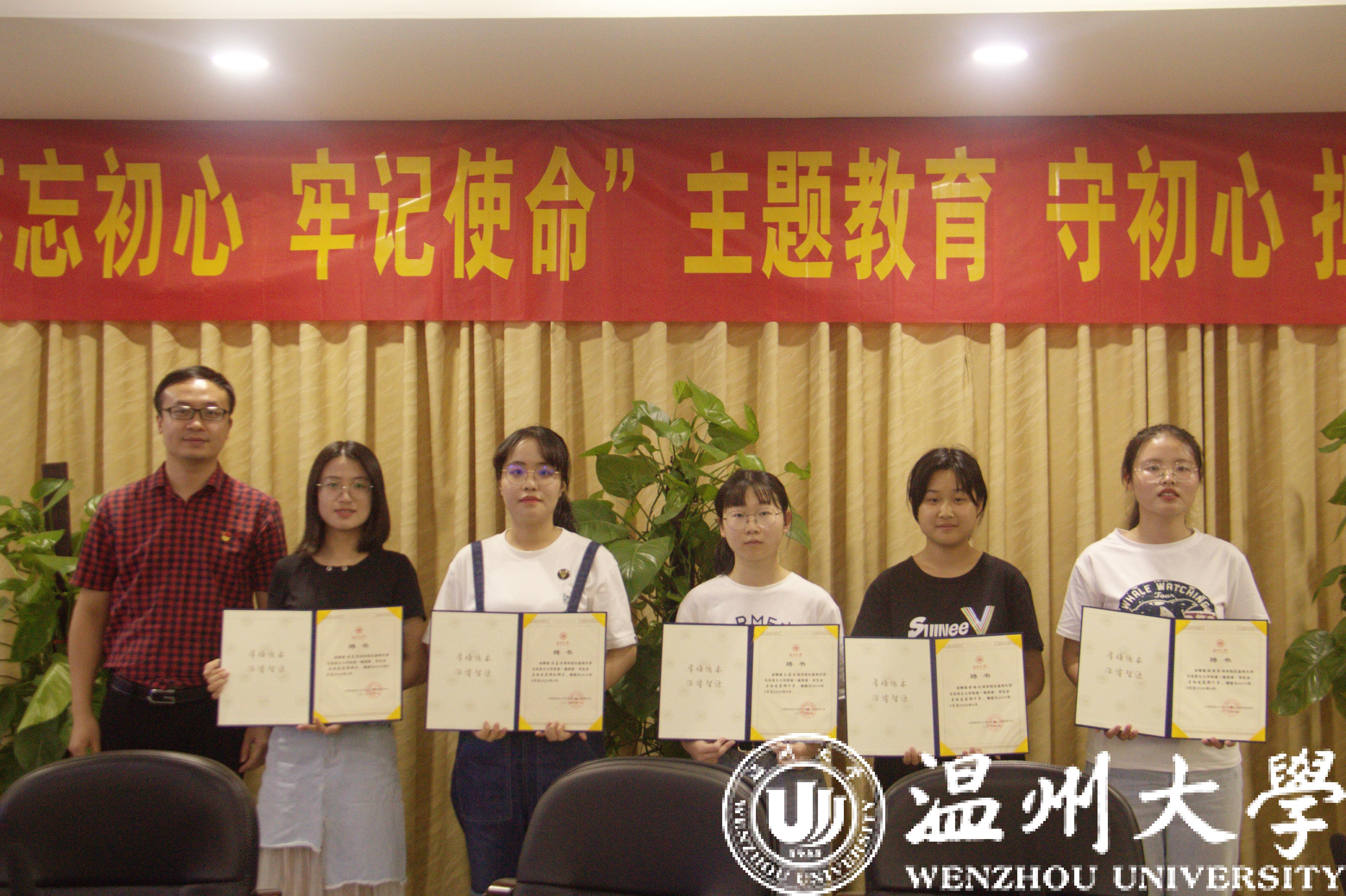 代表发言完毕,大会的第二项议程颁发聘书也随之进行,林大可老师为主席团与各部门部长、干事颁发聘书并合影留念。学院为大家准备了诚意满满、制作精良的聘书,也是对大家的期望与鼓励。