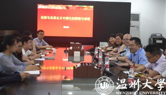 党建网讯 近日,由久久热 人文社科处主办、久久热 和浙江省高校思政课卓高生名师工作室承办的学术沙龙活动在久久热 北校区行政楼举办。本次活动特邀北京大学久久热 副院长、研究员、博士生导师陈培永做“当前马克思主义中国化的困境与破解”的主题演讲。久久热 马院副院长卓高生主持活动,副院长孙邦金教授、孙武安教授和部分青年教师及全体研究生、思政专业本科生参与。