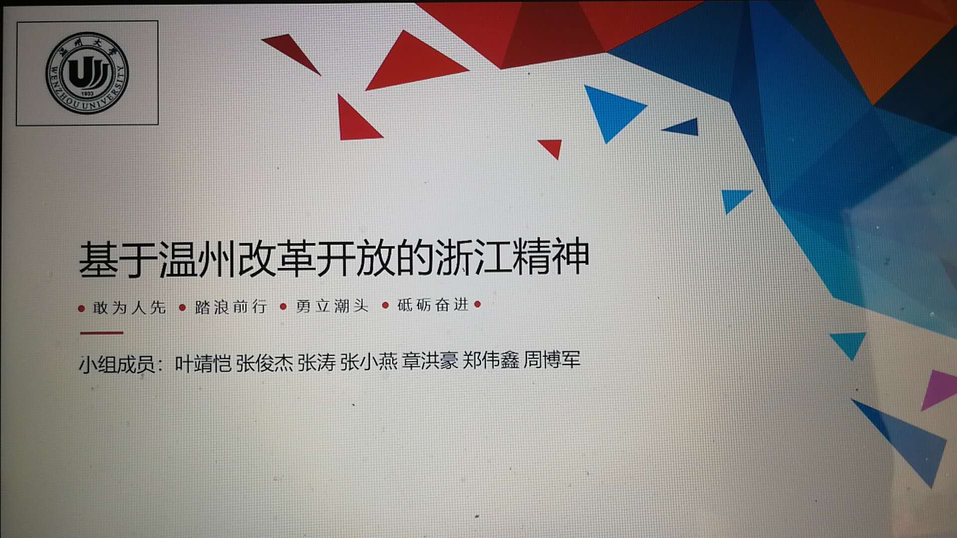 今年是改革开放40周年,为进一步坚定青年大学生四个自信,放飞青春梦想,学院在本学期教学计划中统一布置,各教研室集体研讨,在本学期开设的思政课中专题设计相关的主题教学活动。在“毛泽东思想和中国特色社会主义理论体系概论”课中,卓高生老师设计了专题视频研讨课,从“中国人,你要自信”视频导入,引导学生分小组讨论“中华民族怎么会自卑了”“中国共产党改革开放的初心何以不改”“青年大学生怎样才能与历史同步与时代同行”等主题,并在小组热烈讨论的基础上增强了大学生的民族自豪感和自信心。在“中国近现代史纲要”课上,陈金飞老师围绕改革开放与浙江的主题,学生分小组进行了课堂展示,中国梦、改革开放中的浙江人、基于温州改革开放的浙江精神、马云与浙江精神、从文化礼堂看浙江精神、八八战略、改革开放对温州的影响、改革创新温州远航——致敬干在实处走在前列的探路者:王均瑶、浙江改革开放在建筑工程中的变化、人水和谐五水共治,进一步提高了大学生对浙江实践与浙江精神内在关系的深刻理解。在“思想道德修养与法律基础课”上,项淳芳老师专题布置了小组探究展示选题,要求学生围绕改革开放40周年的主旋律,完成一期采访类节目,通过小组合作拍摄创作一部反映大学生风采、“我心目中的思政课”、“改革开放四十年”、“为建国70周年献礼”的微电影等主题活动,进一步增强了大学生的爱国主义情感。各课教师还通过课堂派互动平台发起了“改革开放与我的家乡变迁”“改革开放与新时代的我们”等话题,抒发了当代大学生对改革开放以来取得成就的高度自豪感,展现了青年学子投身现代化强国建设、放飞青春梦想的豪情壮志。