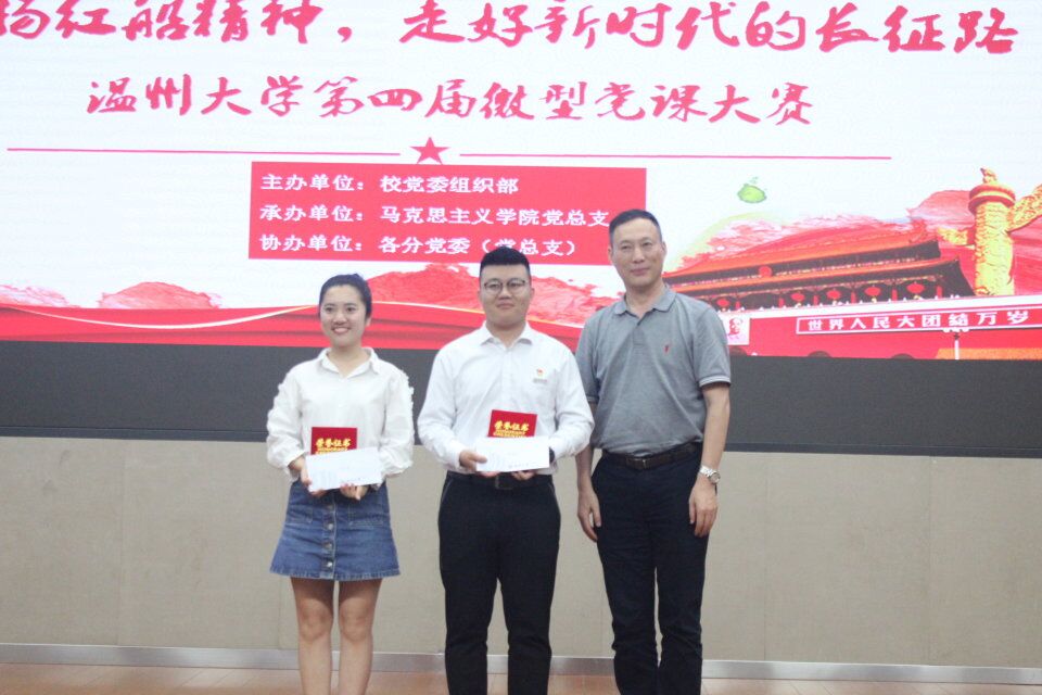 在久久热 党委组织部的大力宣传与各党总支的积极配合下,来自研究生院、步青学区、溯初学区、超豪学区、瓯江学院的18位学生党员参与了此次大赛。风华正茂,正直青春年华,选手们恰当运用多媒体,将红船精神与党员事迹相结合,融其精神于现实,付诸行动于小事,将党员在生活中如何“弘扬红船精神,走好新时代的长征路”这一问题做了清楚的阐释,向所有人发出继承和弘扬红船精神的号召,将新时代学生党员的精神面貌发挥得淋漓尽致。选手展示结束,微党课大赛教工组选手吴冬冬及余海群代表教工党员就其微党课主题进行了精彩的展示,给学生党员起到了很好的榜样示范作用。