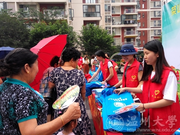 星火党员志愿服务队走进茶山街道博园社区,协助社区开展禁毒知识宣传。