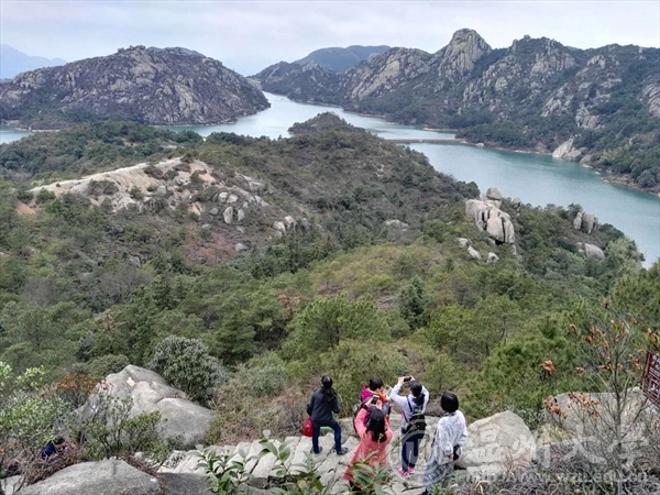 八女一男,一行9人在盘云谷下车,沿着林间小道,一路说说笑笑,十几分钟抵达天河水库,近身观赏温州最美丽的水光山色,接着攀登大罗山地貌博物馆暨最美山峰——百家尖,高瞻远瞩周边的青山绿水、怪峰奇石。天气预报今天是中雨,但在我们整个登山观水过程中,天公很是作美,没让一点雨飘落到我们身上。风光旖旎,游人稀少,我们一边尽情享受着大自然的恩赐,一边全方位释放自己的活力和靓丽。