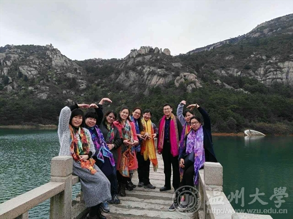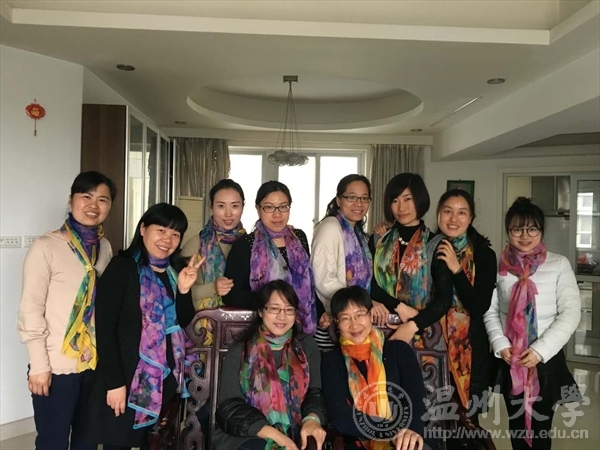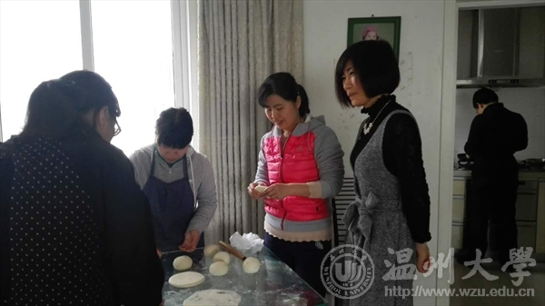 马院女教师课多,所以今年的“三八”选择三九(周三下午)过。9日上午,没课的女教工齐聚陈金飞老师家,一起做温州特色小吃——麦饼。等上完课的老师一起用餐后,大家围上靓丽的丝巾,在总支书记王柏民老师的陪同下,前往大罗山天河水库景区。