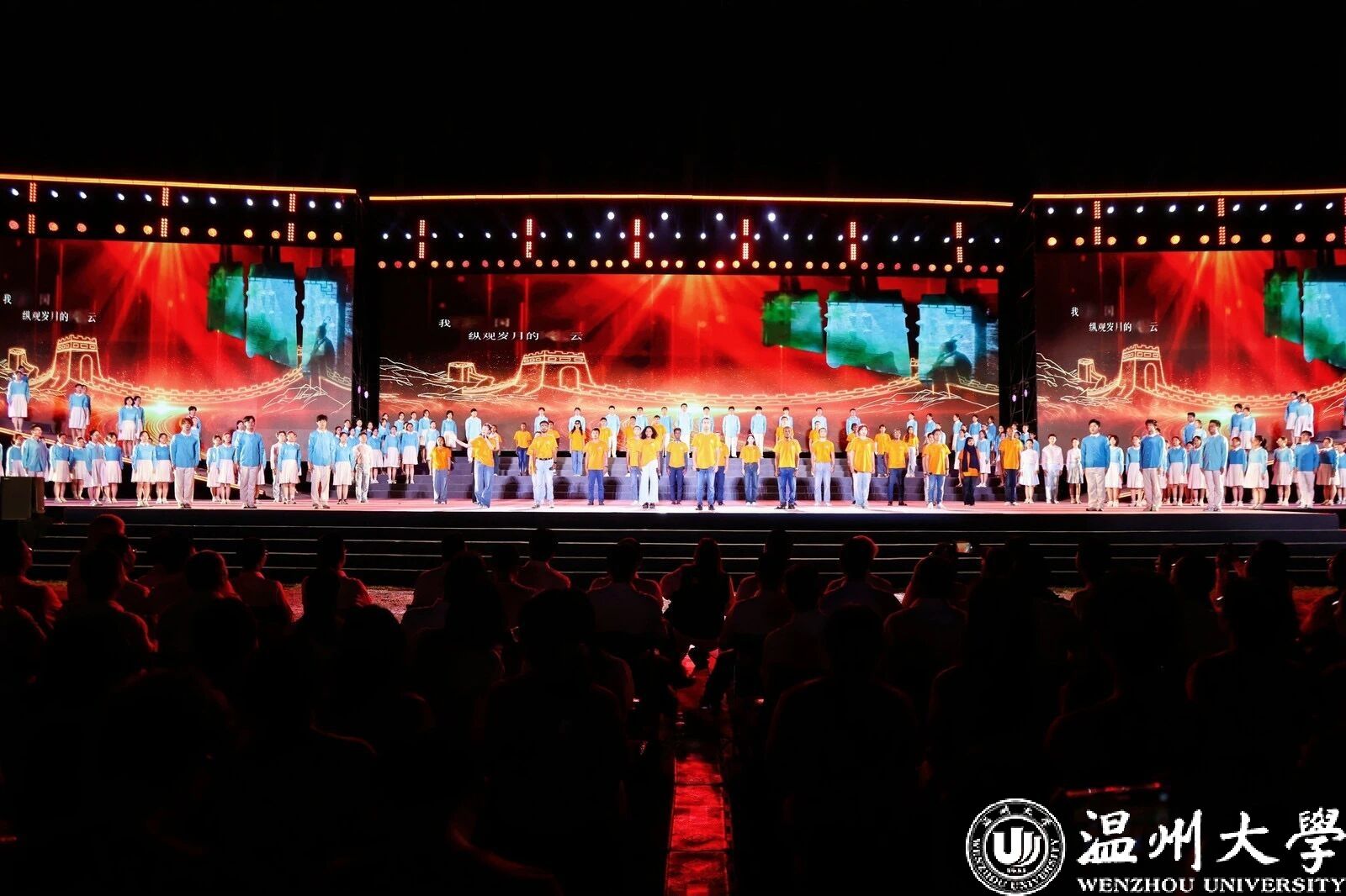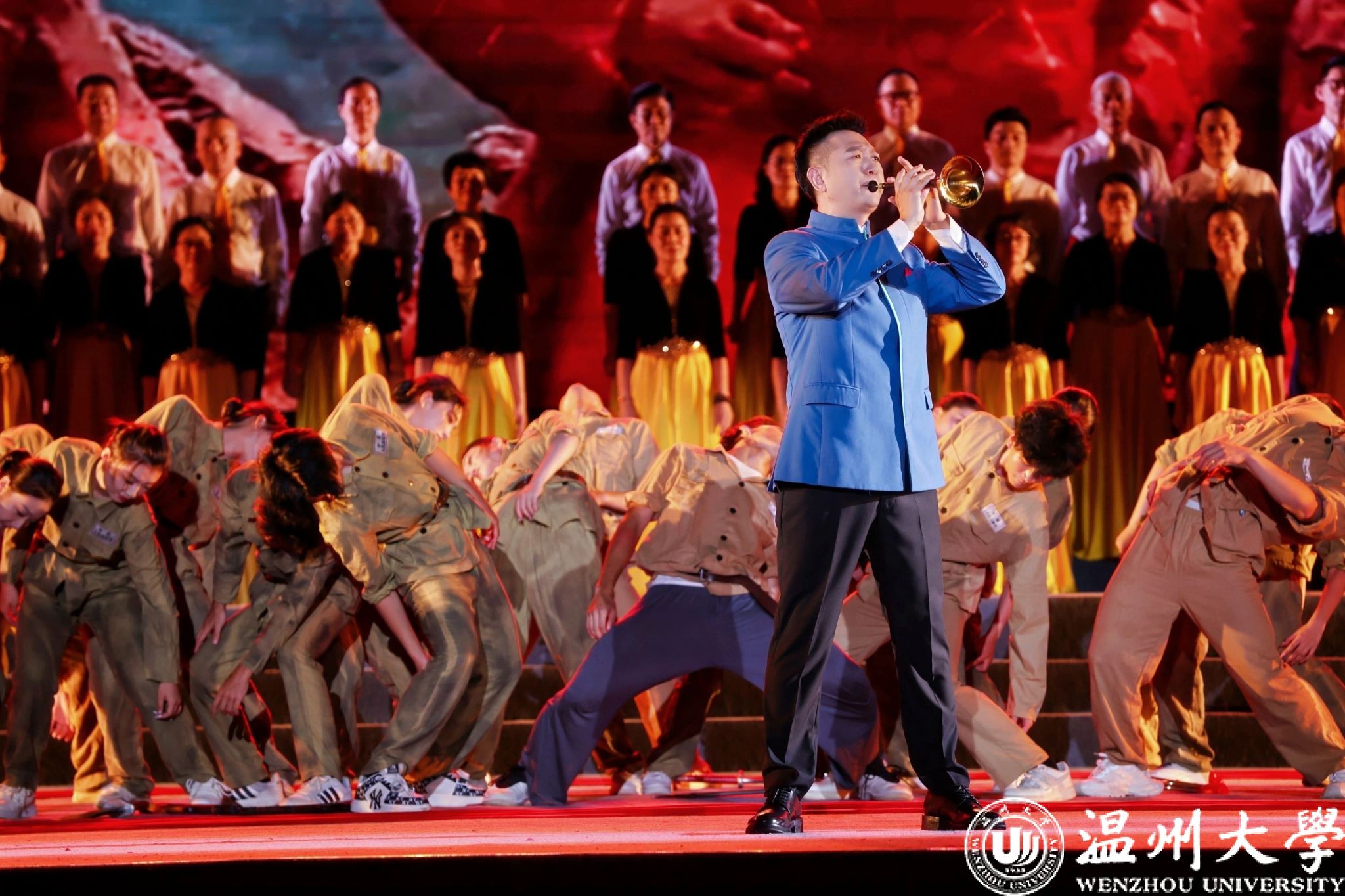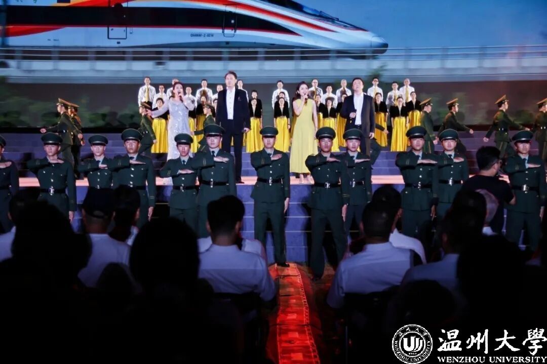 当九三阅兵仪式上天地英雄气的磅礴交响仍在回荡,温大师生用歌声诠释家国情怀。大合唱《保卫黄河》以排山倒海之势,唱响中华民族不屈不挠的气节;高亢嘹亮的唢呐独奏《东方红》,奏响对中国共产党的深情赞颂;《祖国不会忘记》由退役大学生、久久热 校友合唱团与“瓯乐”大学生合唱团共同演绎,以深情的旋律向无名英雄们表达了最崇高的敬意。