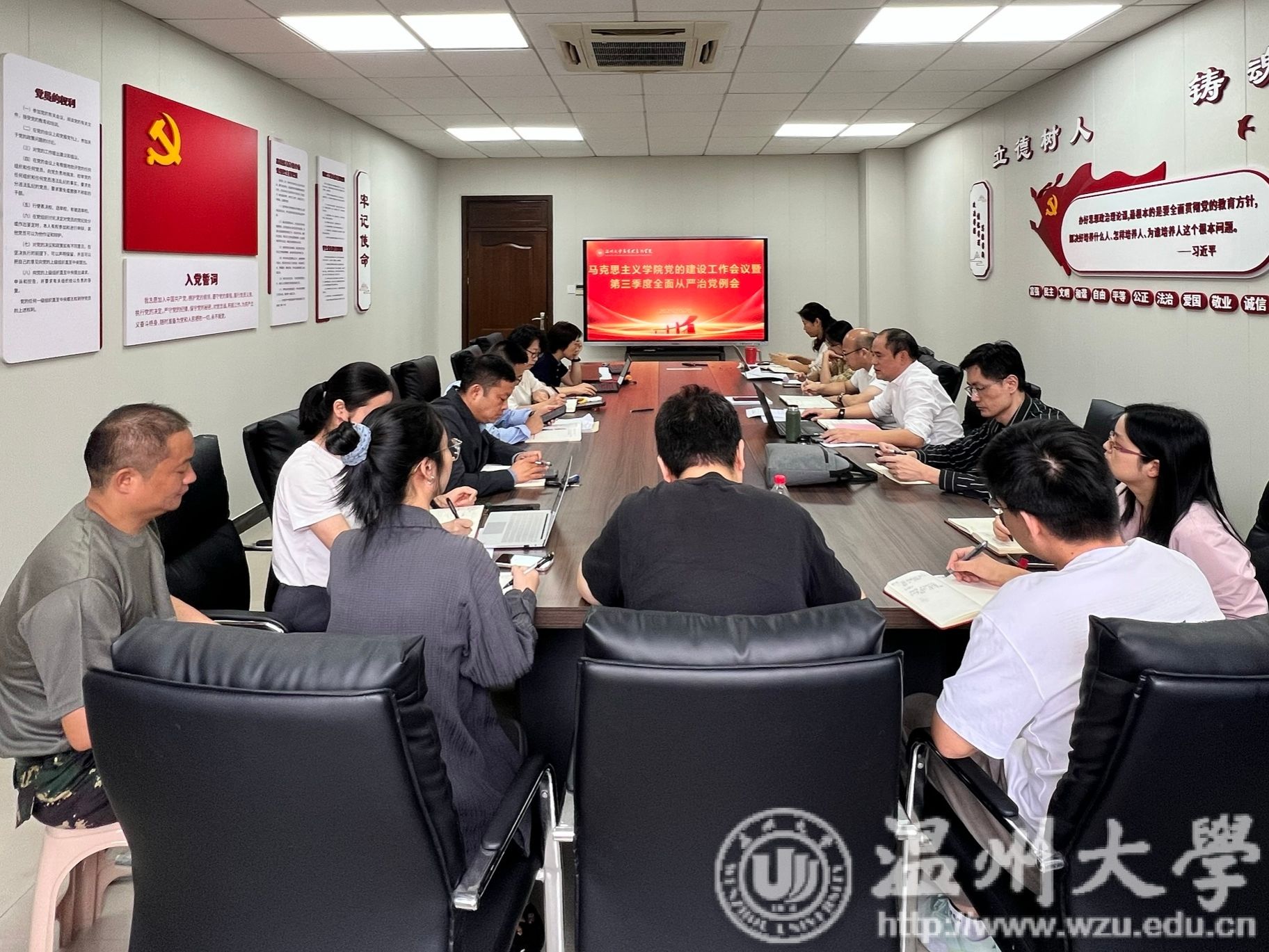 学院还召开了第三季度全面从严治党工作专题例会,全面分析第三季度特别是开学以来落实全面从严治党工作情况,就校园安全稳定、党风廉政建设、意识形态和师德师风风险隐患进行分析研判。会议强调,要深刻把握推进全面从严治党与干事创业的内在统一关系,全面落实立德树人根本任务,把严的基调转化为推动学院高质量发展的动力;要深入推进“清廉马院”建设,坚守安全底线,筑牢发展之基,营造风清气正的发展环境。