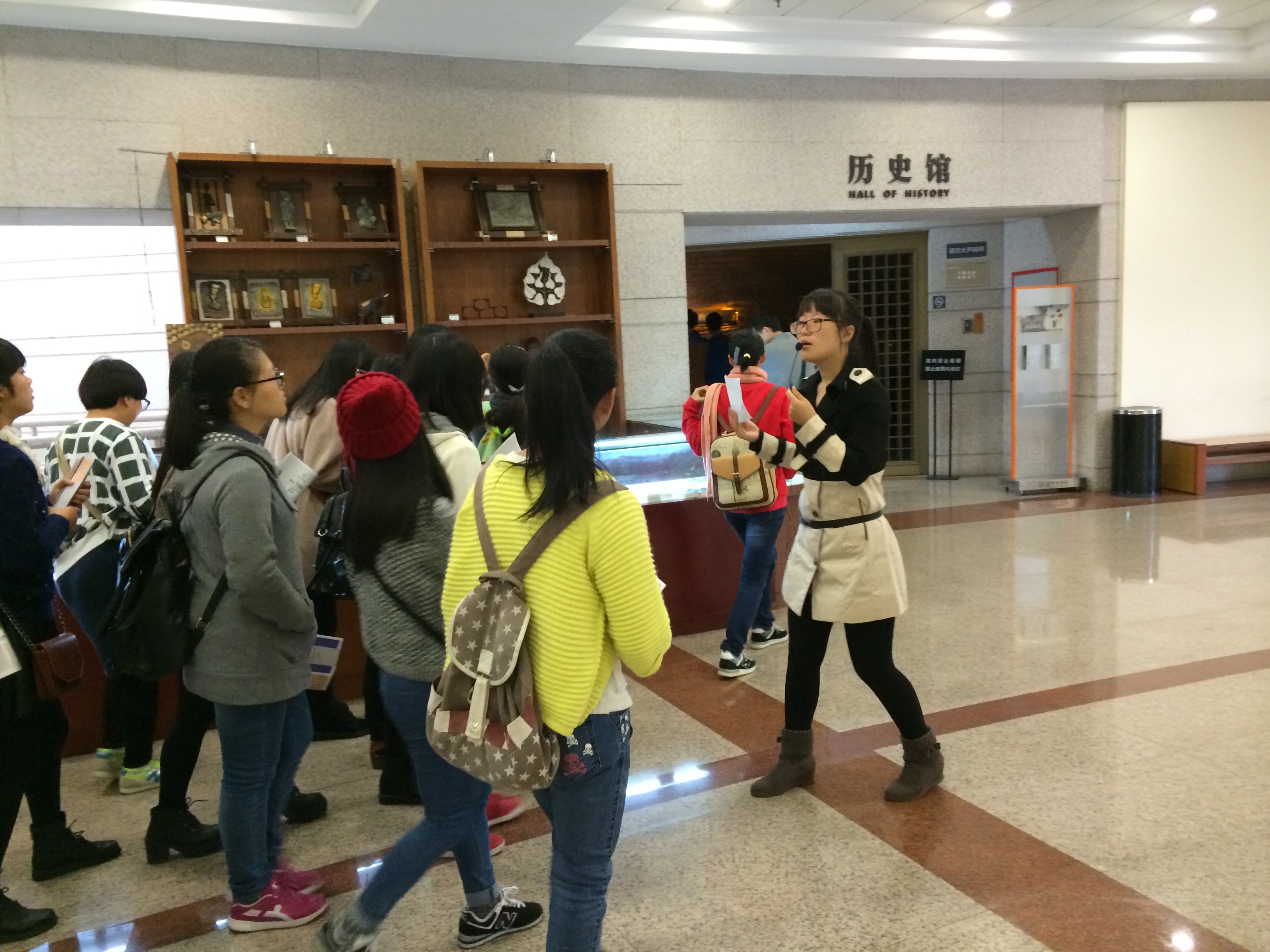 卓高生副院长的带队下,经过为期一周的培训,于2014年十月下旬正式开始,活动历时一个月,为在校一年级新生义务讲解温州市博物馆历史馆——“温州人——一个生存与开拓的故事”。
