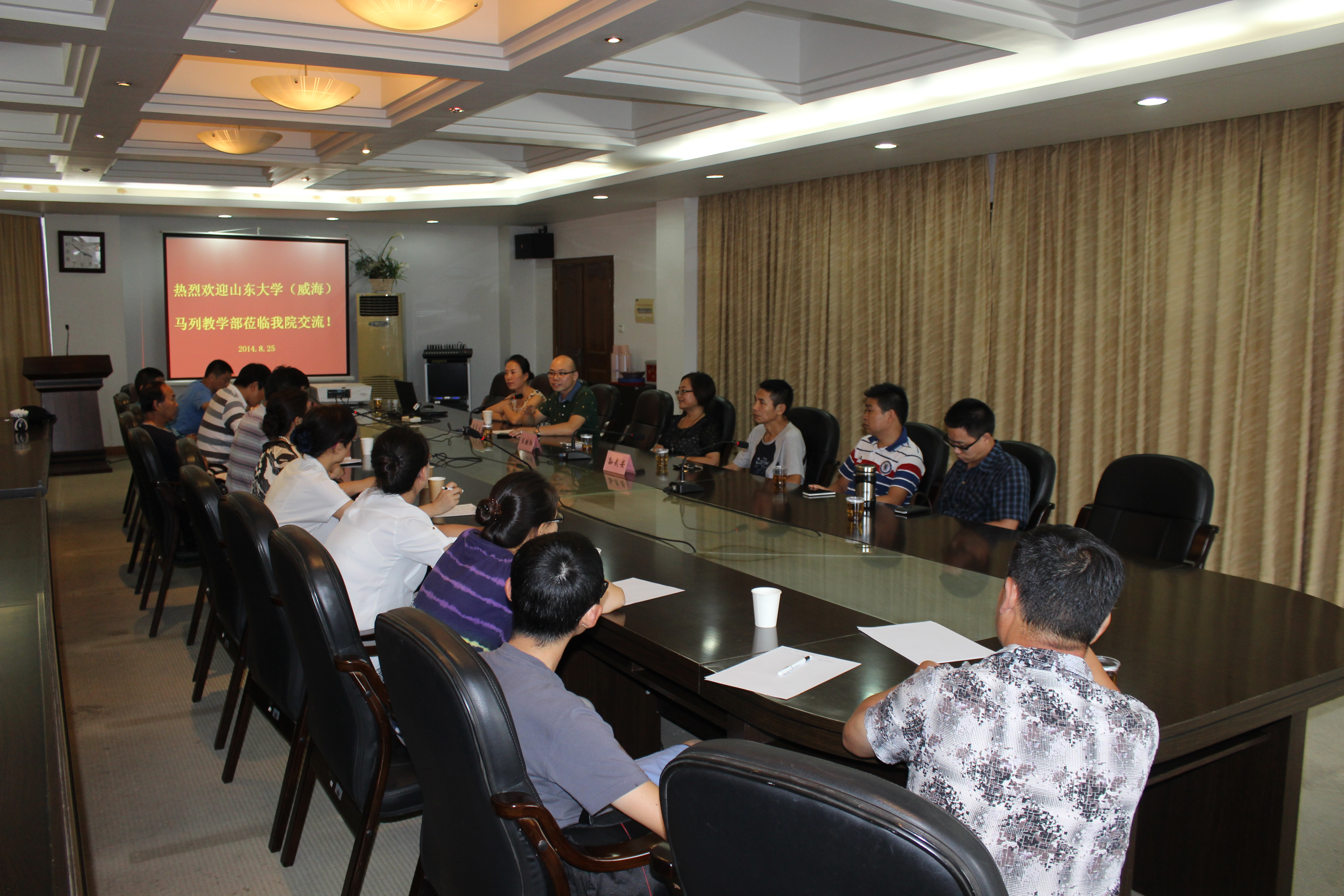 所取得的成绩表示赞赏,并介绍了山东大学(威海)马列教学部的办学情况及经验。双方围绕思政课课堂教学效果、平时成绩考核、考试形式改革、实践教学等方面进行了深入交流探讨。