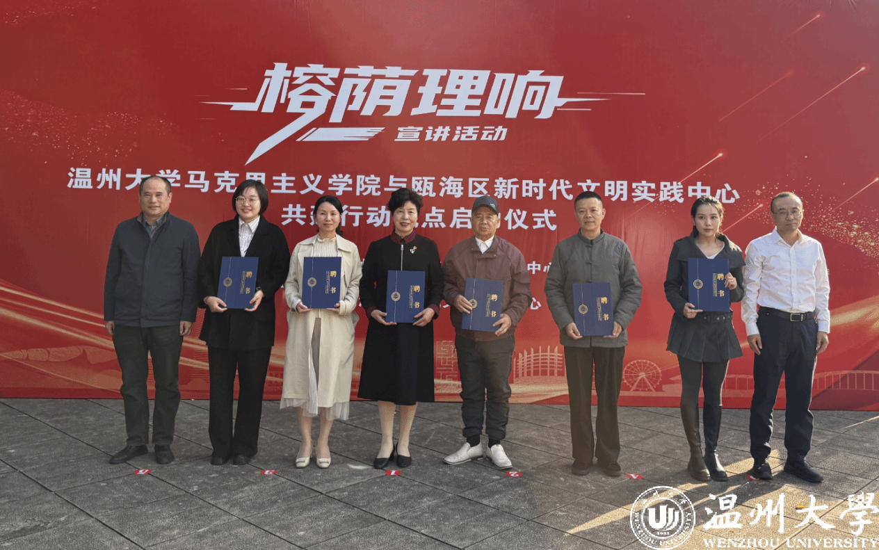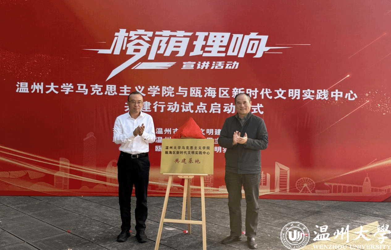 活动中,胡晓立部长与杨立淮书记共同为“久久热 和瓯海区新时代文明实践中心共建基地”揭牌。李乐主任与卓高生院长作为代表双方签署《共建行动战略合作协议》。此外,还为瓯海区新时代文明实践宣讲团代表、久久热 新时代文明实践博士宣讲团代表颁发聘书。一系列标志性举措的落地,进一步确立了双方合作的组织基础与机制保障。