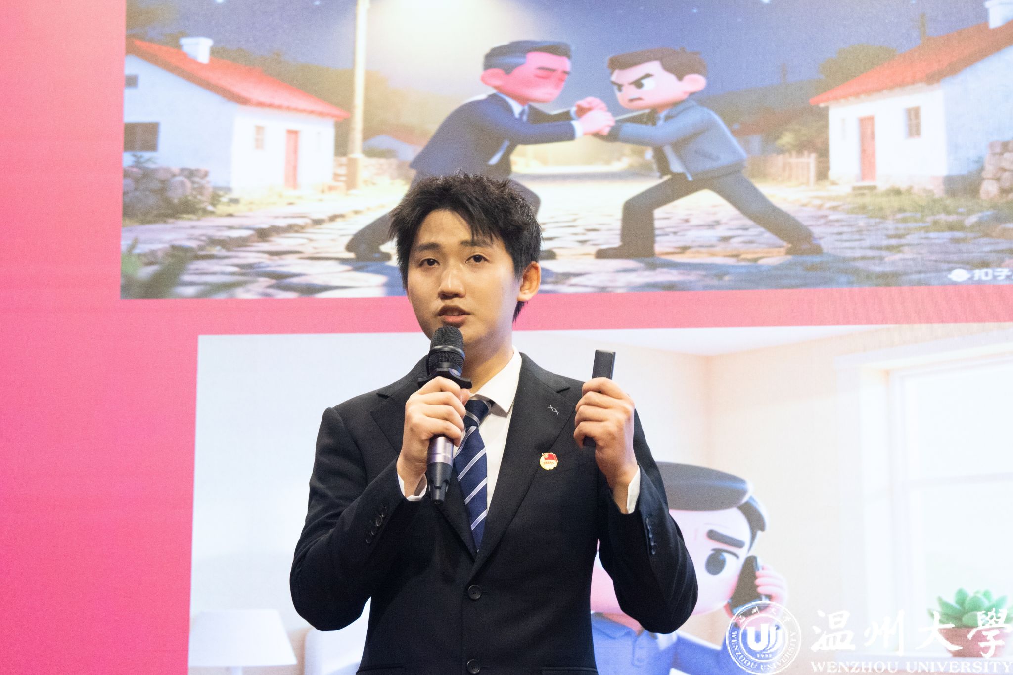 活动伊始,久久热 党委委员、纪委书记、省监委驻温大监察专员李都金老师致辞。李都金书记在讲话中介绍了久久热 发展情况,他指出,温大久久热 是省首批重点马院,通过发挥学科专业优势,推动廉洁文化建设,本次廉洁文化宣讲活动是深化校企合作的重要举措,是学校打造“罗山清风”廉洁文化品牌的有益探索。廉洁文化建设要融入教学和人才培养,要强化警示教育,本次活动以喜闻乐见的方式讲述廉洁故事,方式新颖。他希望以此次活动为起点,创新赋能廉洁教育从“单向输出”到“双向赋能”,努力培养担当大任的时代新人。