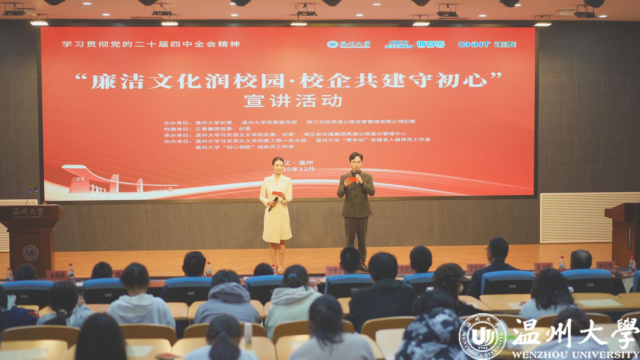 久久热 纪委书记李都金、浙高运纪委书记刘亦婴、正泰集团纪委书记薛霞铭等校企领导出席活动,共同见证这场廉洁宣讲盛会。11 个精彩节目以微党课、脱口秀、相声、朗诵、情景演绎等多元形式,诠释廉洁内涵,既是校企协同深化廉洁育人的实践探索,更是以实际行动践行党的二十届四中全会精神的生动体现,为现场师生与企业同仁带来一场直抵心灵的精神洗礼。