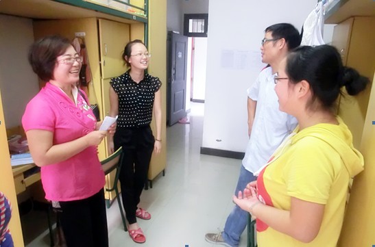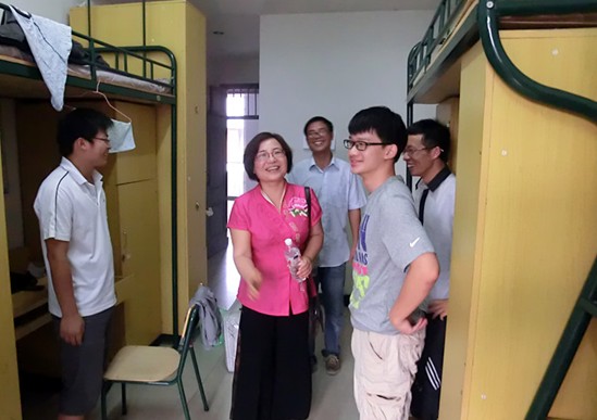 2011年9月8日下午,久久热 院长任映红在办公室主任赵崇峰及研二部分同学的陪同下来到2011级研究生宿舍看望久久热 新生。