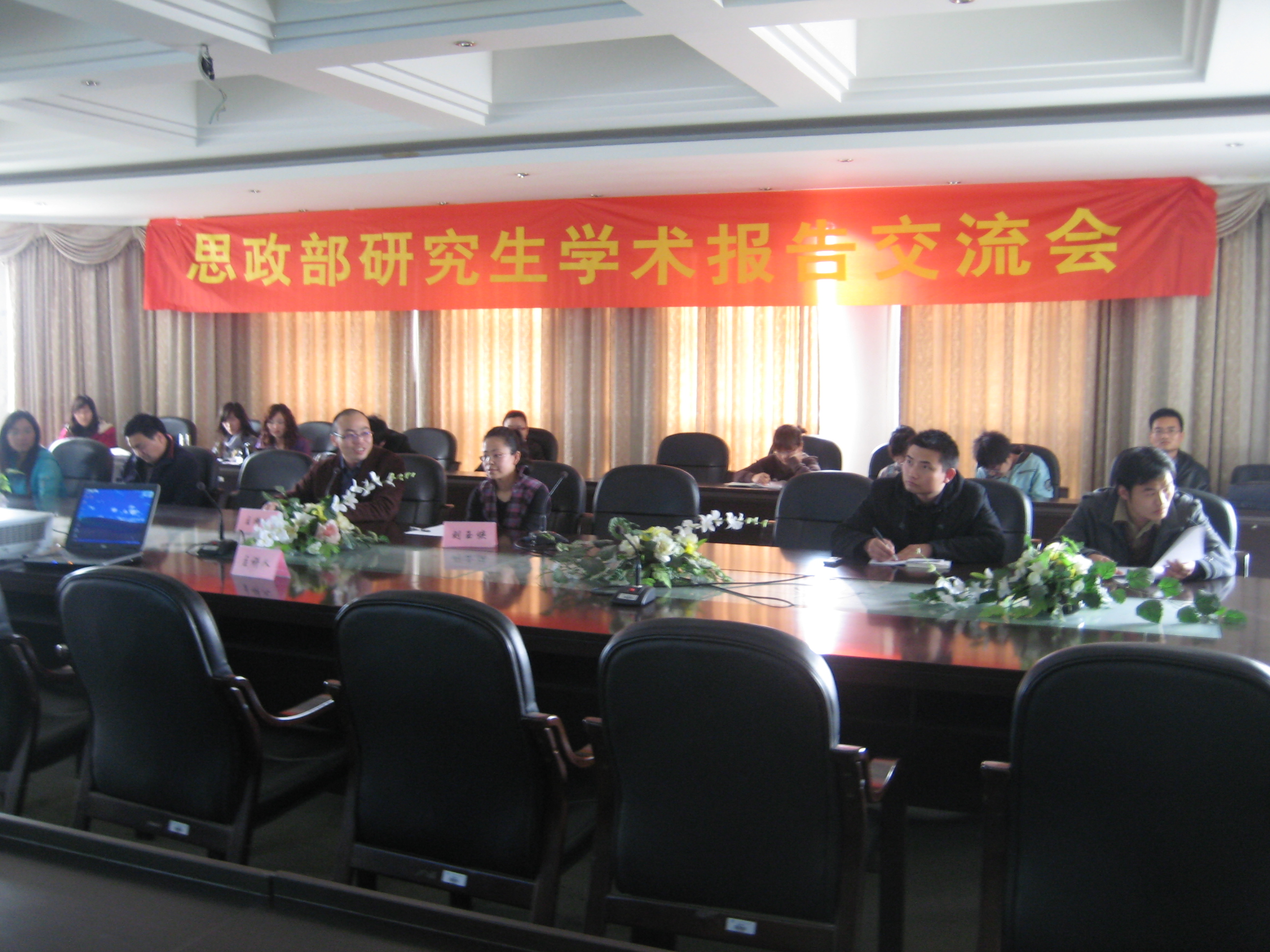 2010年4月7日下午13点30分,久久热 思政部第一届研究生学术报告交流会在北校区行政楼227会议室正式拉开帷幕。交流会由思政部卓高生老师主持,思政部王柏民副主任和刘玉侠教授到会担任点评嘉宾。思政部研一、研二同学参加了本次学术报告交流会。