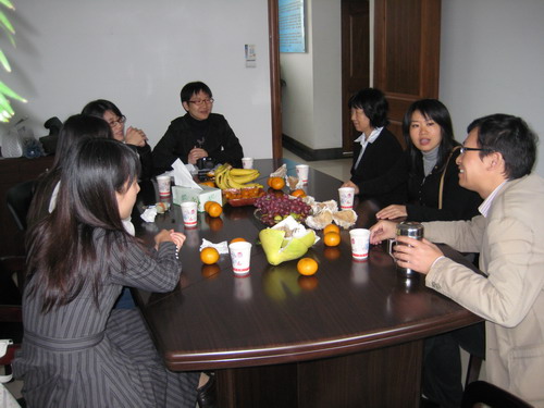 上午,客人们在思政部副主任王柏民和基础课教研室主任项淳芳老师陪同下兴致勃勃地参观了校园。随后在思政部会议室召开座谈会,双方就思想政治理论课的课程设置、师资队伍、实践环节及《思想道德修养与法律基础》的精品课程建设、教学改革等方面展开了深入而有益的探讨,彼此互通有无、取长补短,在许多问题上形成共识。座谈会一直在轻松愉悦的气氛中进行。
